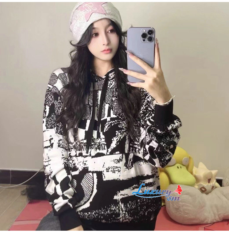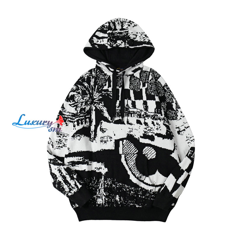 LOUIS VUITTON-01078 루이비통 블랙/화이트 코튼 후드 티셔츠 남여공용