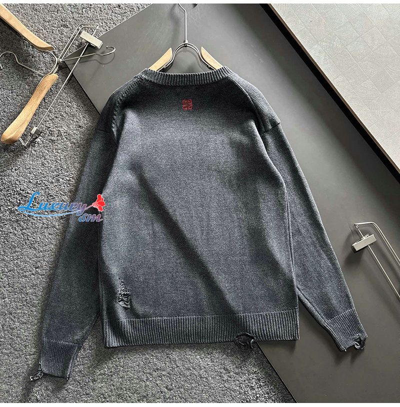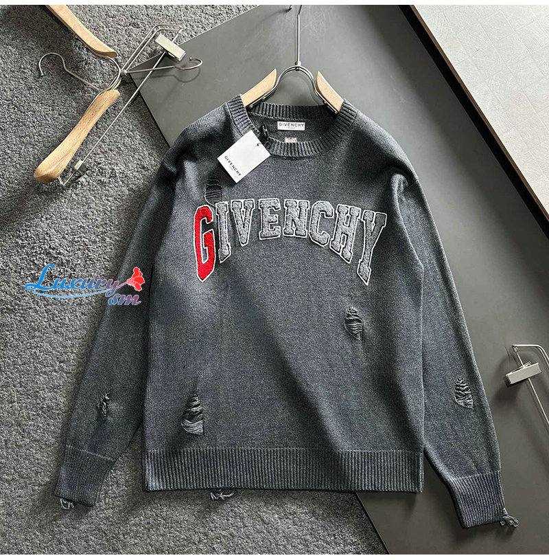 GIVENCHY-01147 지방시 그레이 아플리케 장식 스웨터 남성용