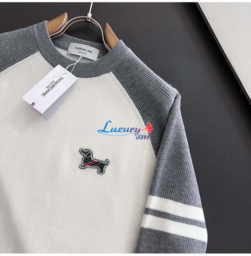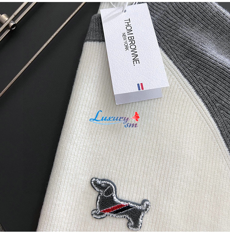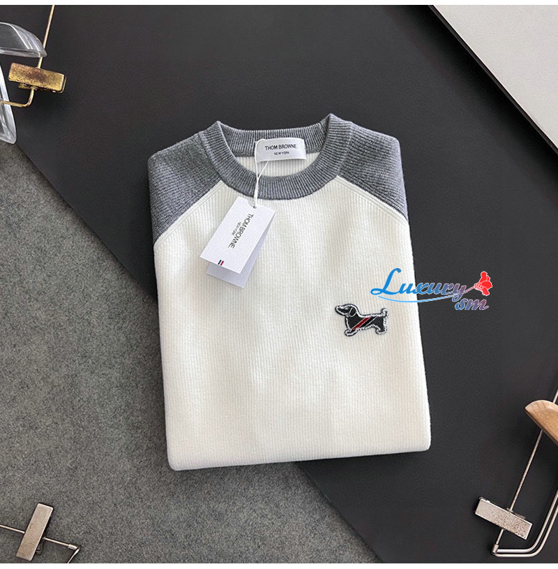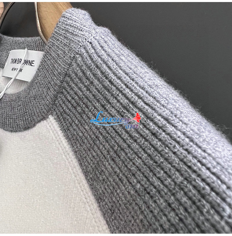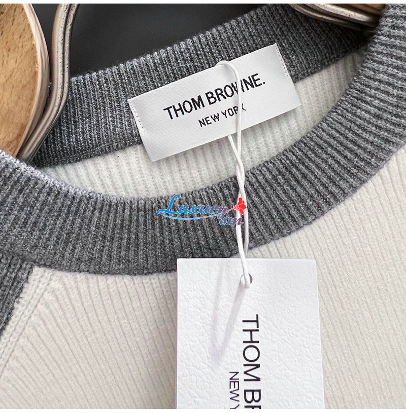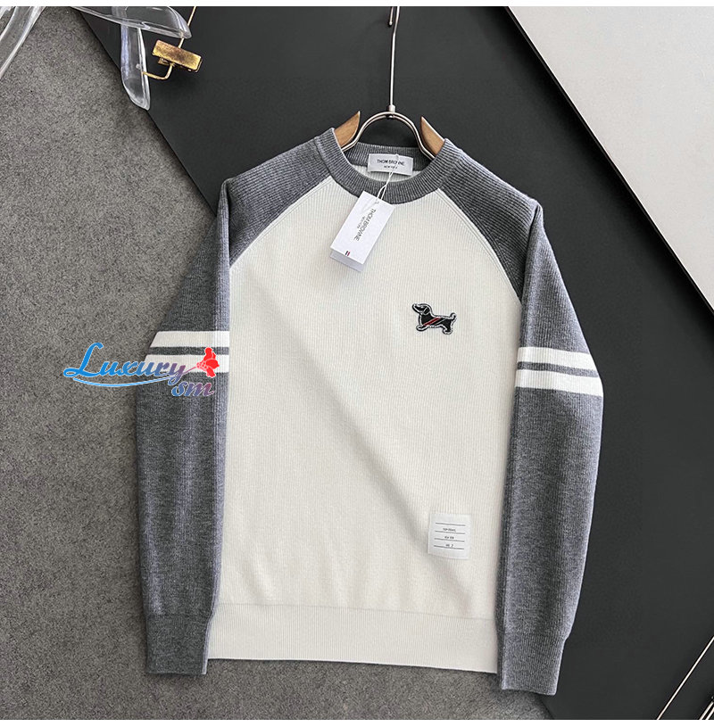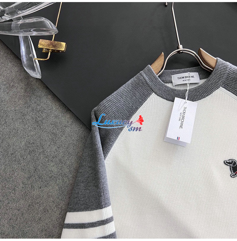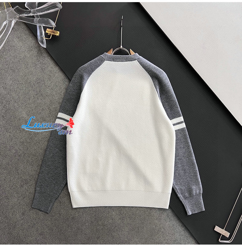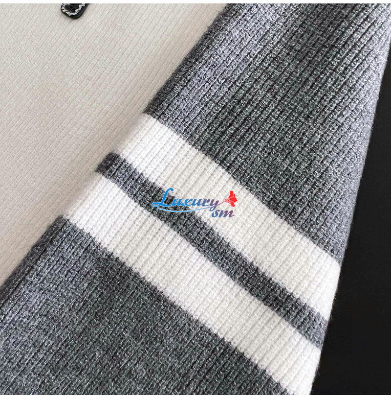 THOM BROWNE-01217 톰 브라운 화이트/그레이 스트라이프 장식 스웨터 남성용