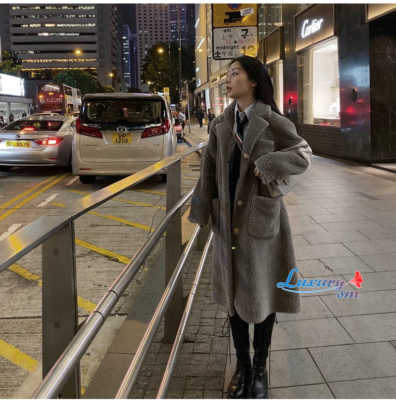 THOM BROWNE-01267 톰 브라운 그레이 시어링 코트 남여공용