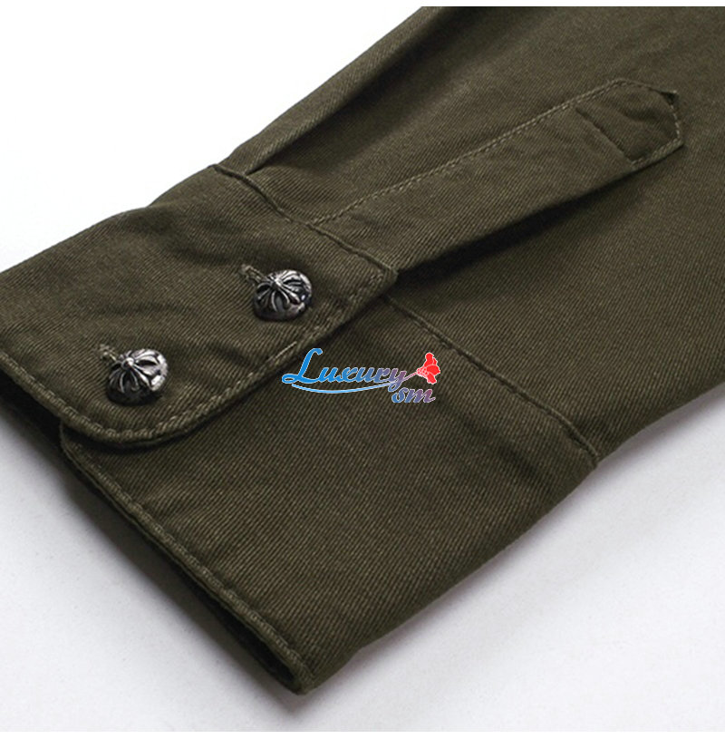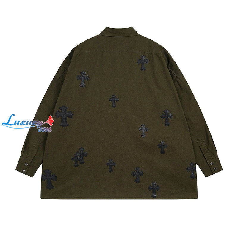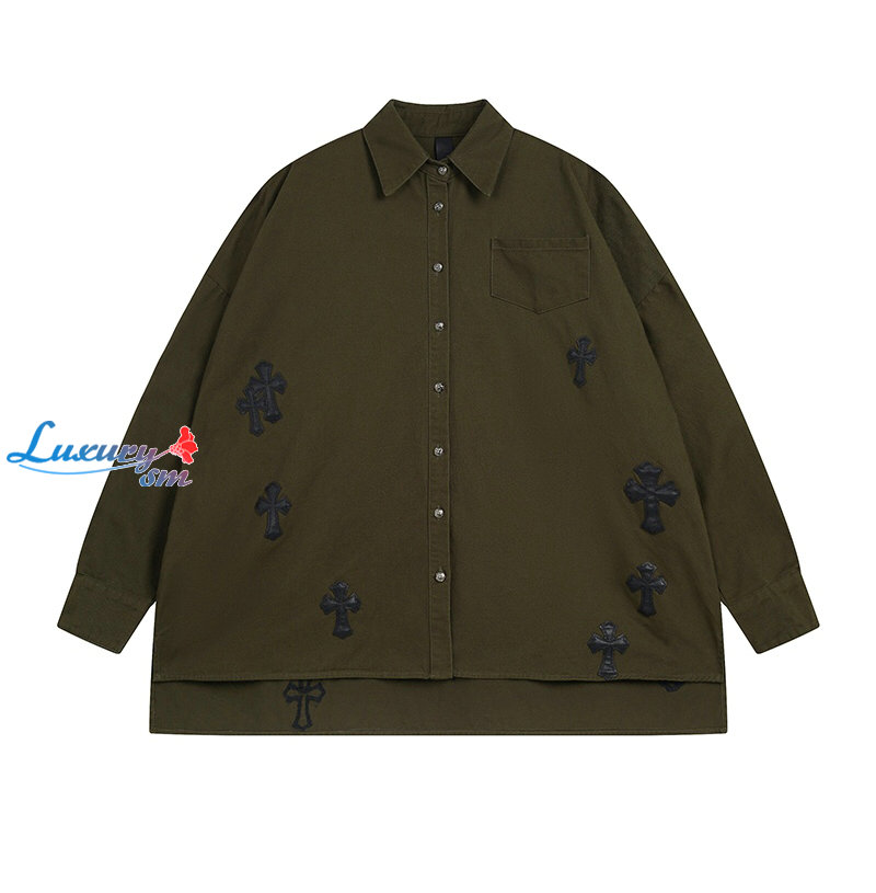 CHROMEHEARTS-012613 크롬하츠 카키 아플리케 장식 셔츠 남여공용
