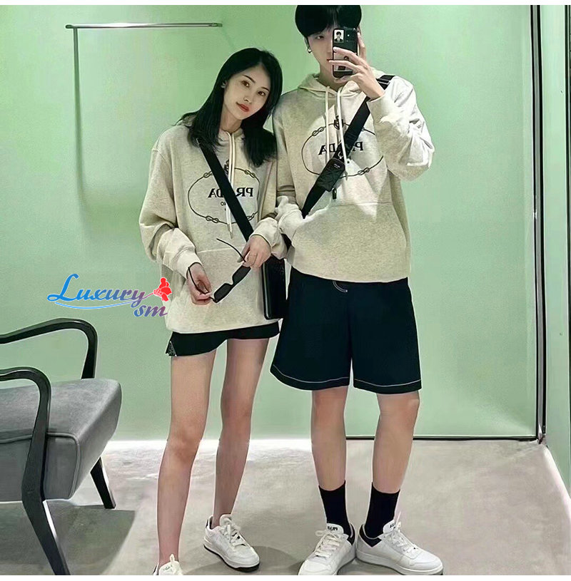 PRADA-012621 프라다 아이보리 아플리케 장식 후드 티셔츠 남여공용