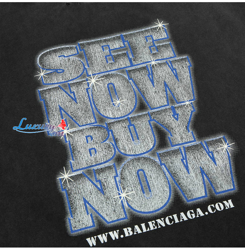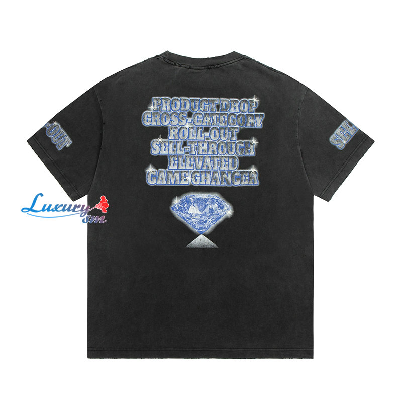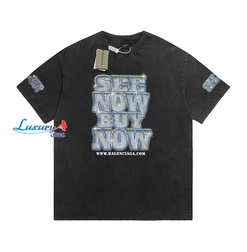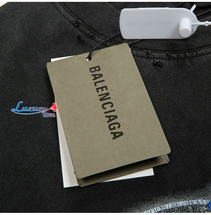 BALENCIAGA-03134 발렌시아가 블루 프린트 장식 워싱 빈티지 티셔츠 남여공용 가격 : 140,000원