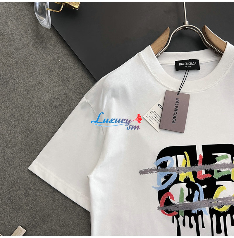 BALENCIAGA-031417 발렌시아가 화이트 프린트 장식 티셔츠 남성용