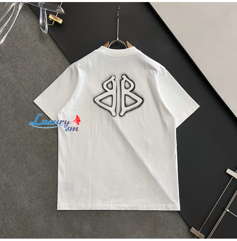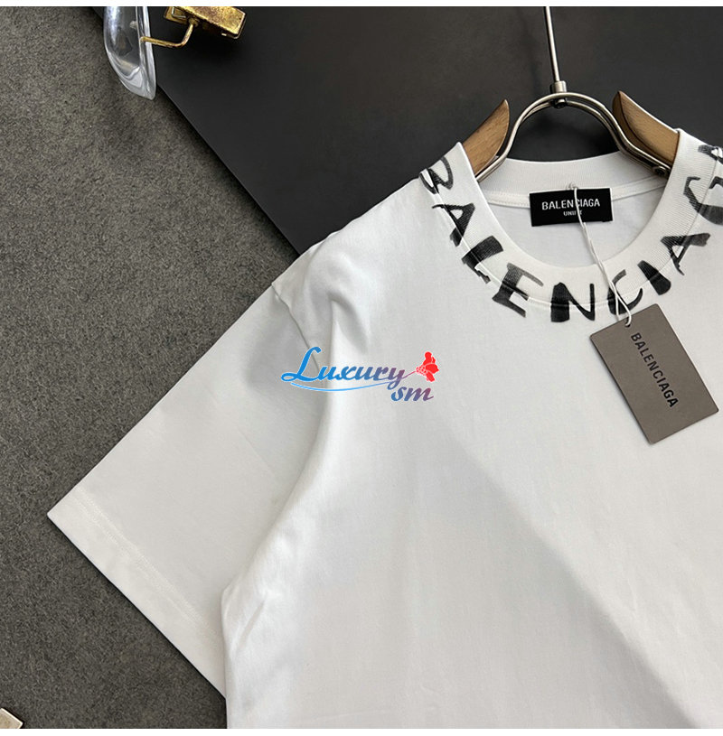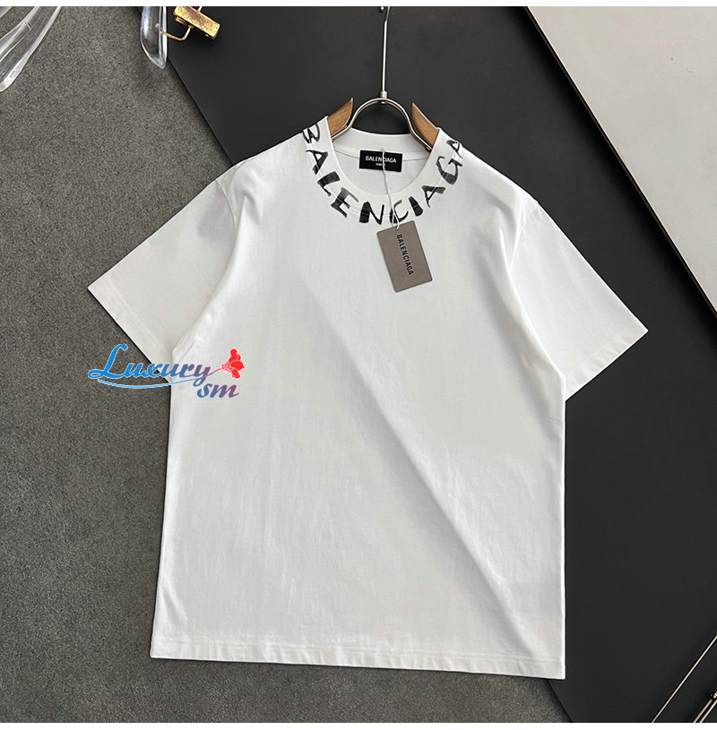 BALENCIAGA-031420 발렌시아가 화이트 프린트 장식 티셔츠 남성용