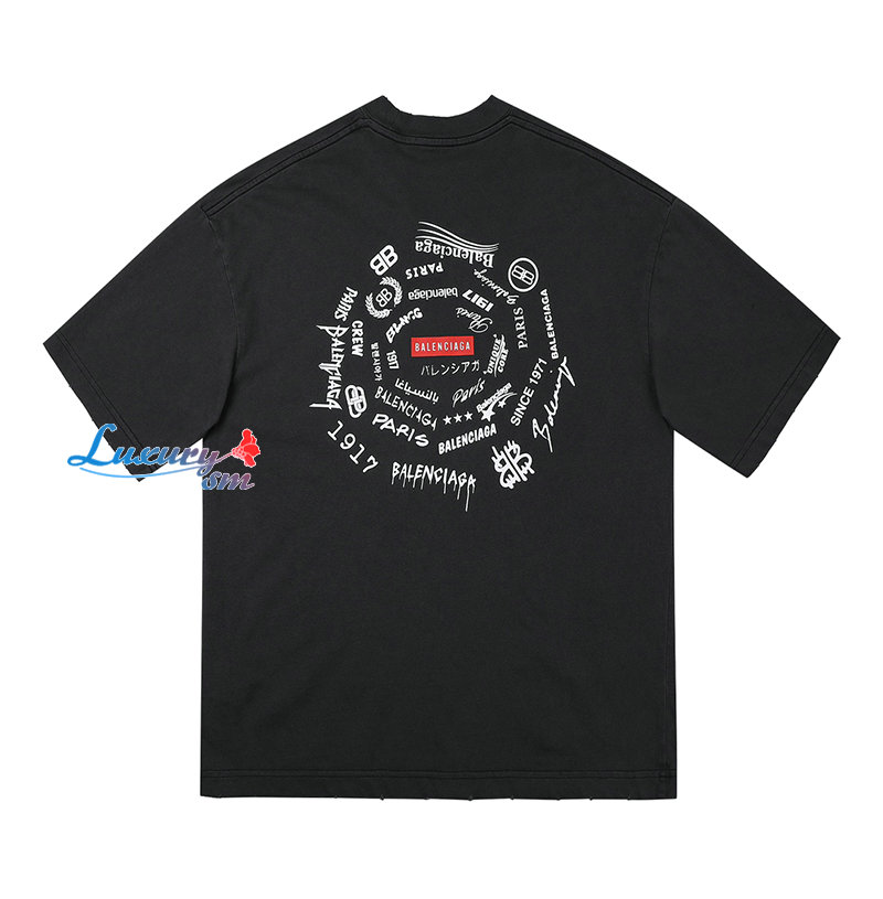 BALENCIAGA-031712 발렌시아가 블랙 프린트 장식 티셔츠 남여공용