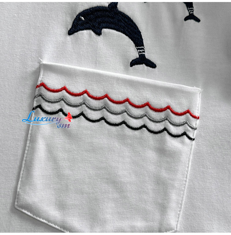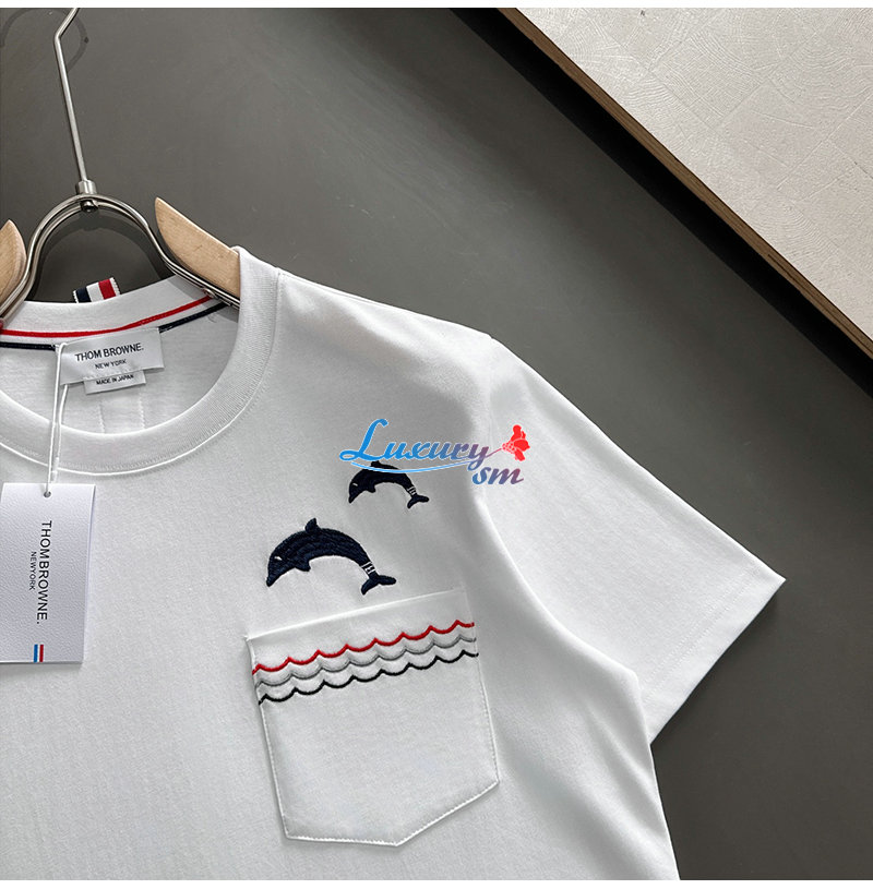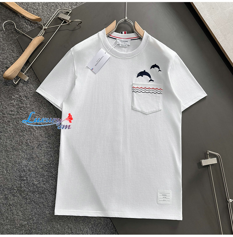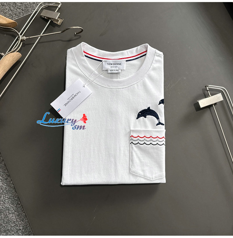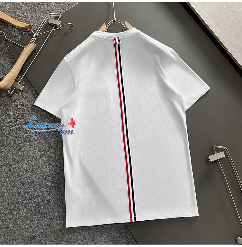 THOM BROWNE-03191 톰 브라운 화이트 아플리케 장식 티셔츠 남성용
