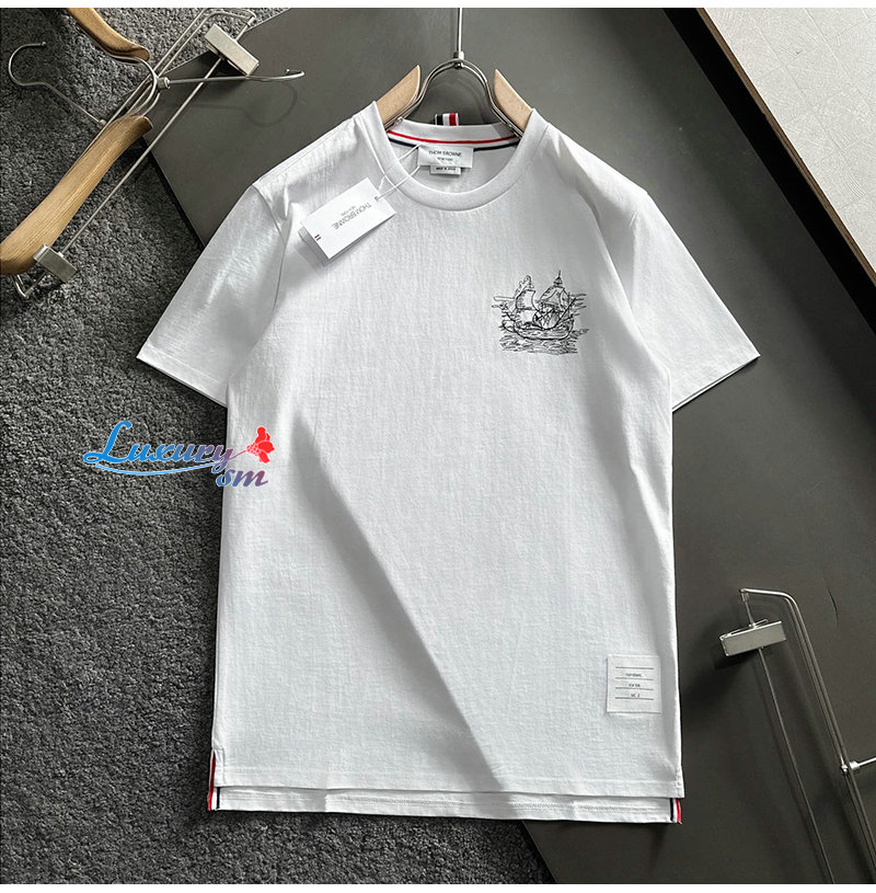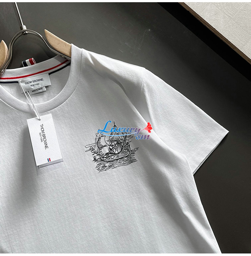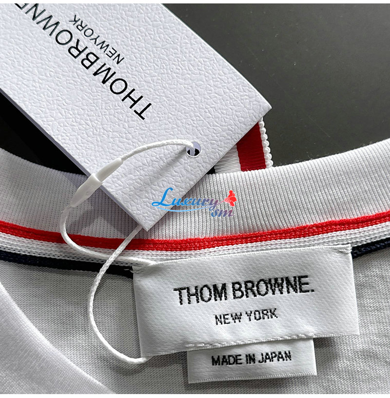 THOM BROWNE-031915 톰 브라운 화이트 아플리케 장식 티셔츠 남성용