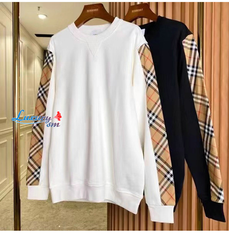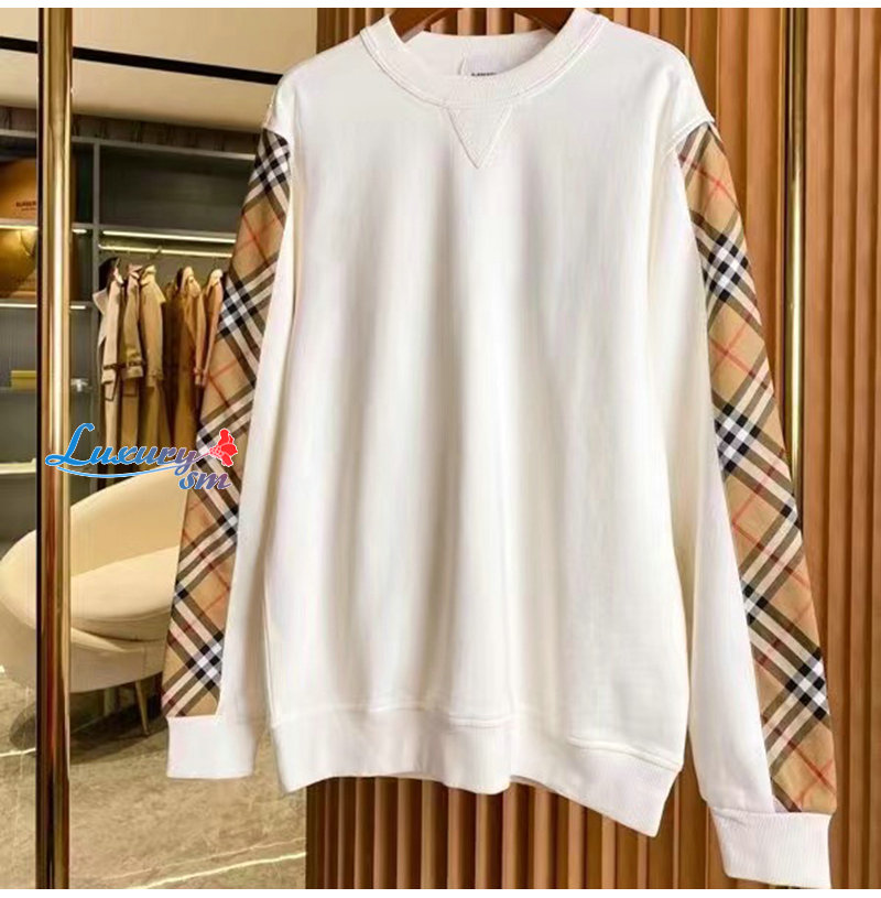 BURBERRY-03222 버버리 화이트 체크 무늬 장식 스웨트셔츠 남성용