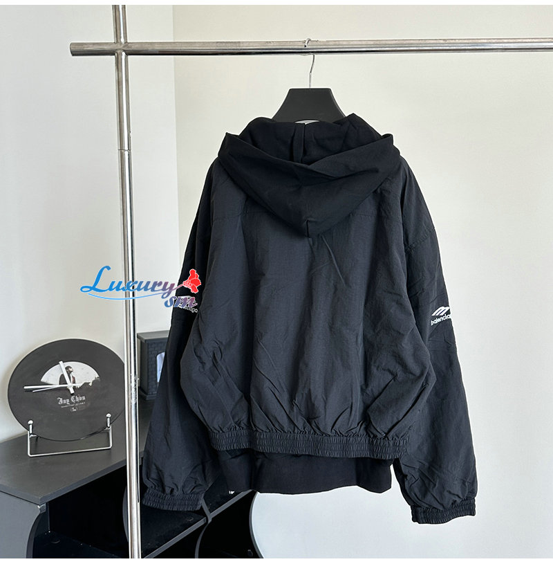 BALENCIAGA-032510 발렌시아가 블랙 나일론 바람막이 후드 재킷 남성용