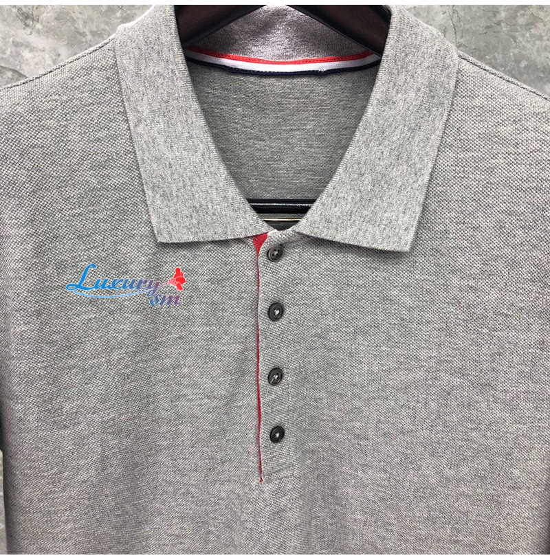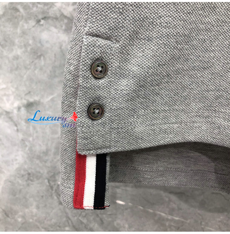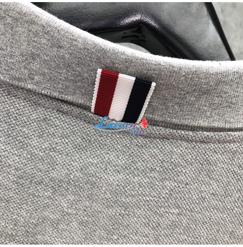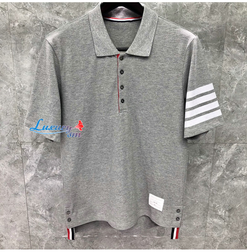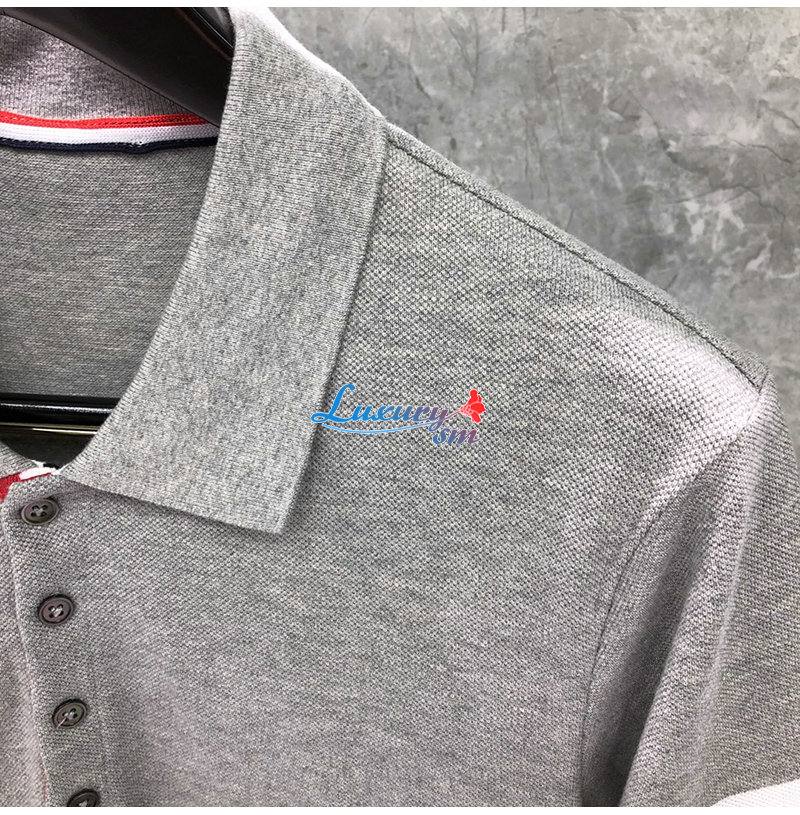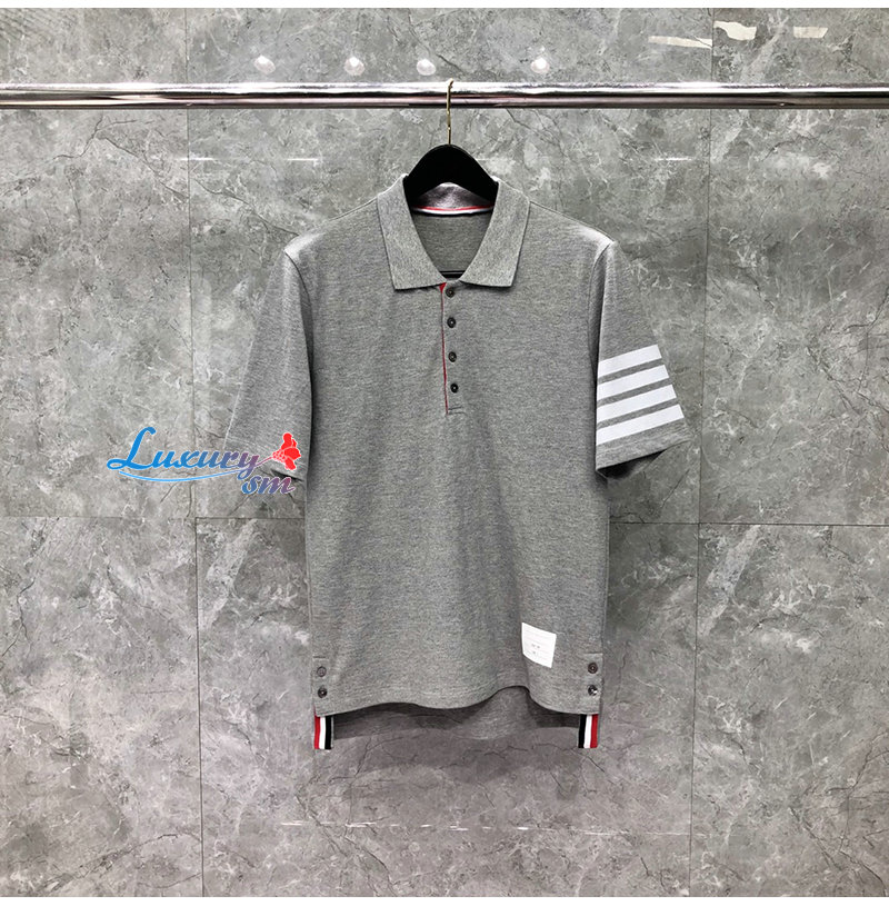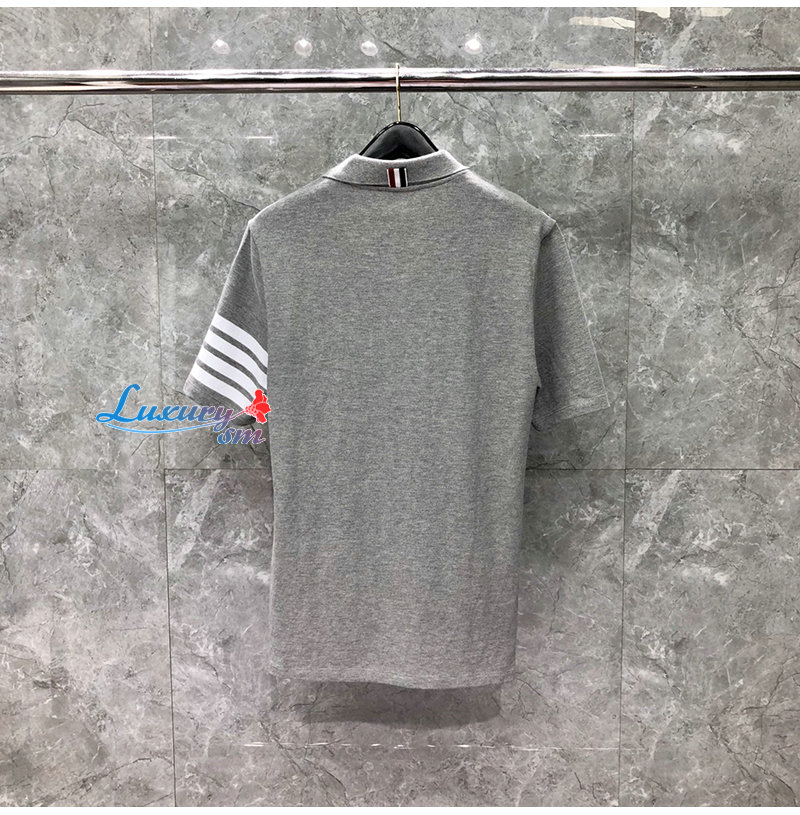 THOM BROWNE-05053 톰 브라운 그레이 스트라이프 장식 폴로 티셔츠 남성용