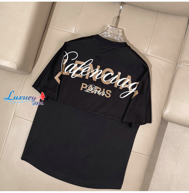 BALENCIAGA-05144 발렌시아가 블랙 프린트 장식 티셔츠 남여공용