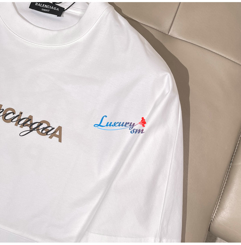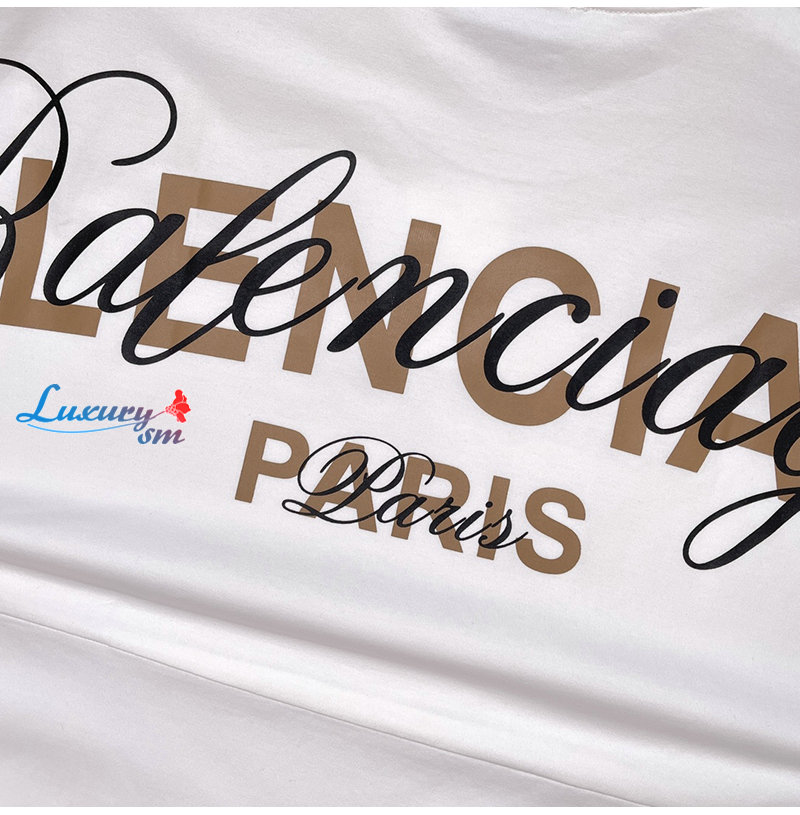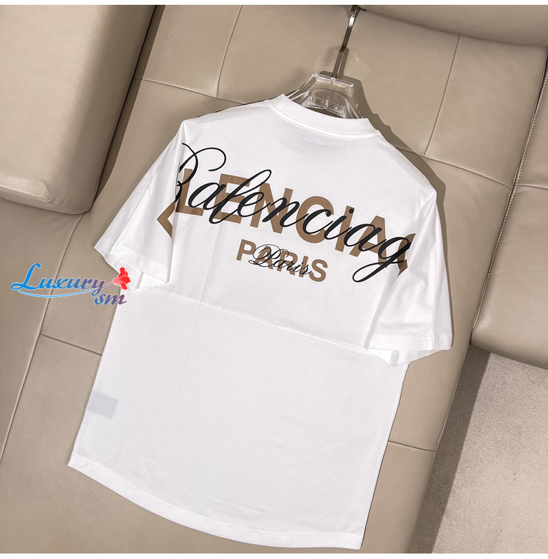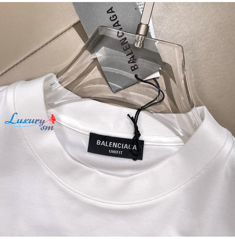 BALENCIAGA-05145 발렌시아가 화이트 프린트 장식 티셔츠 남여공용