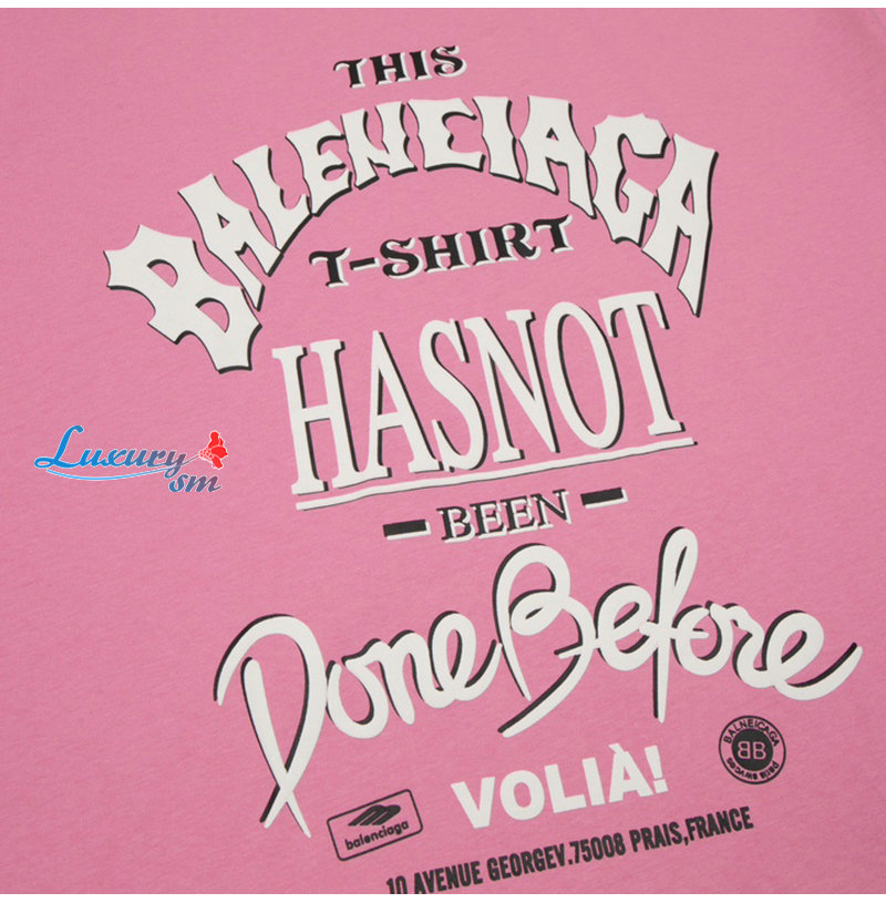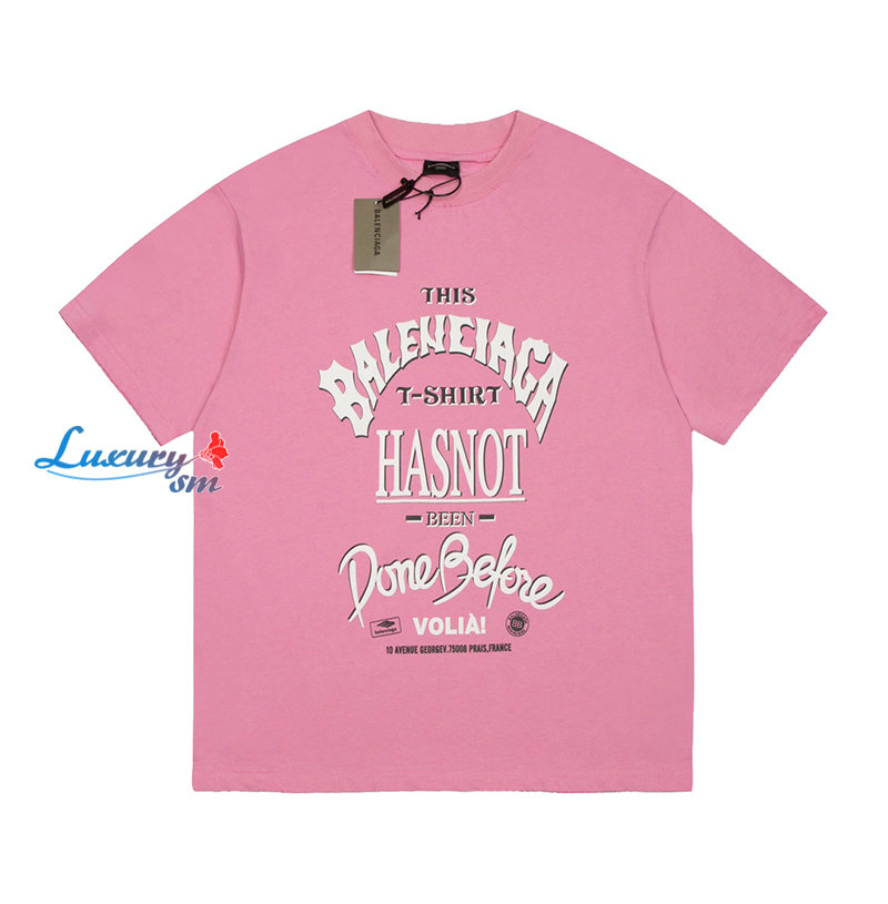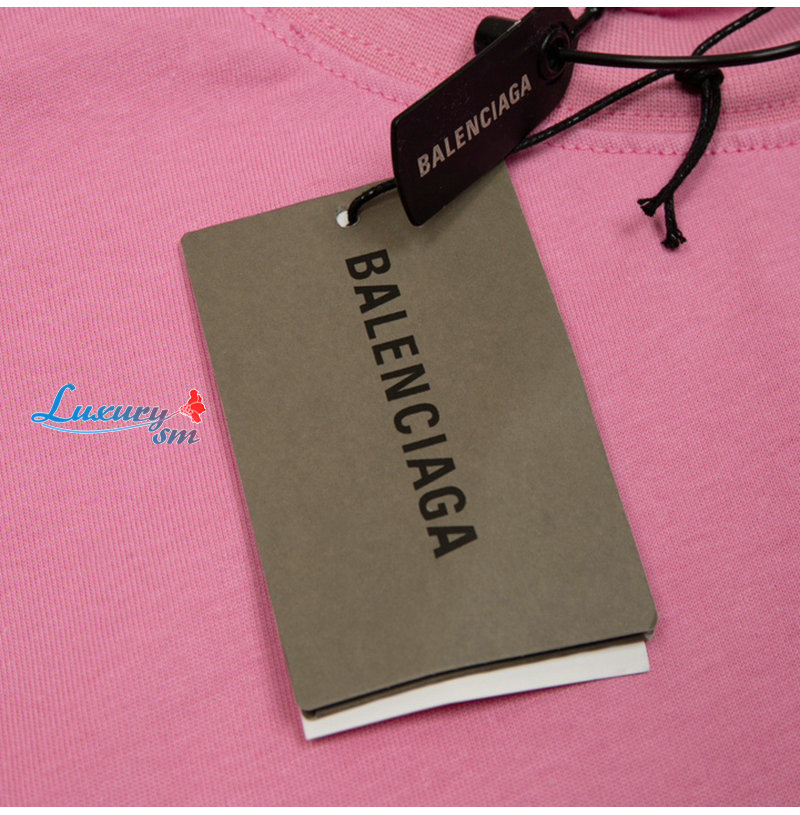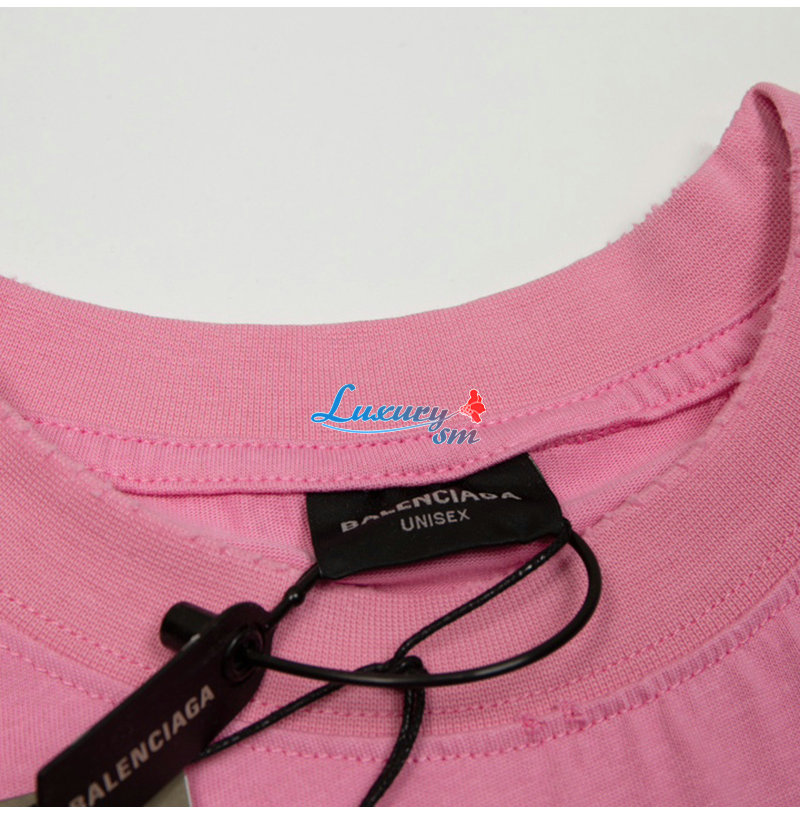 BALENCIAGA-05223 발렌시아가 핑크 프린트 장식 티셔츠 남여공용