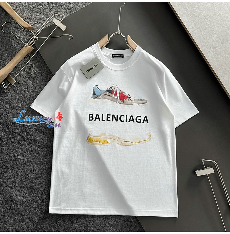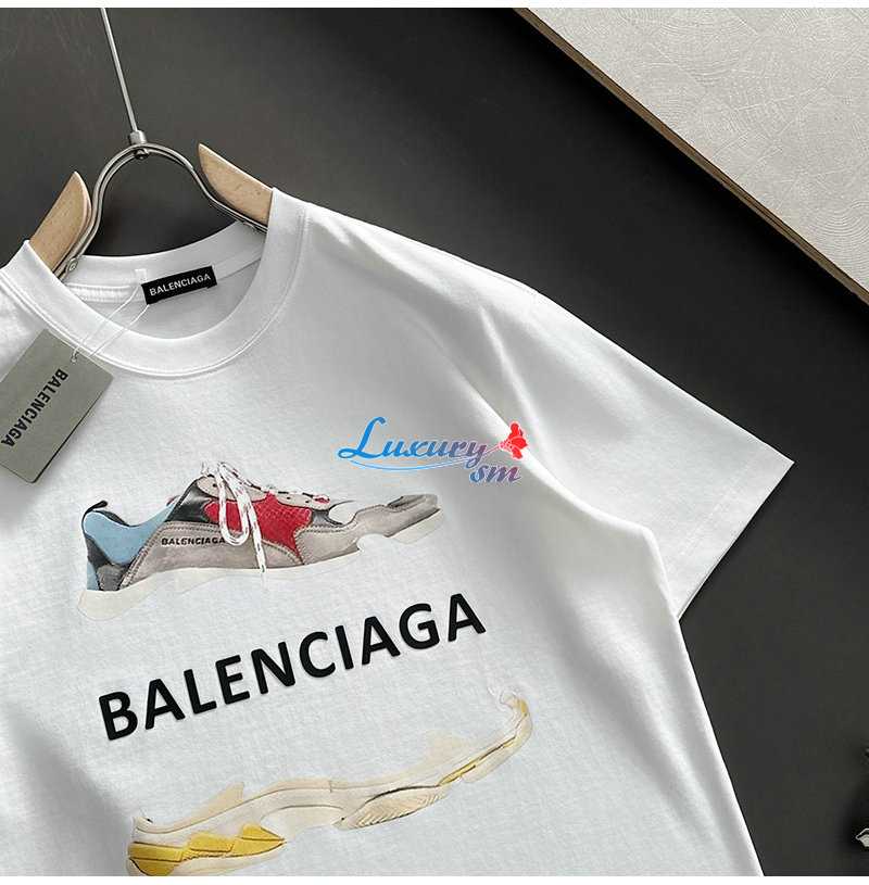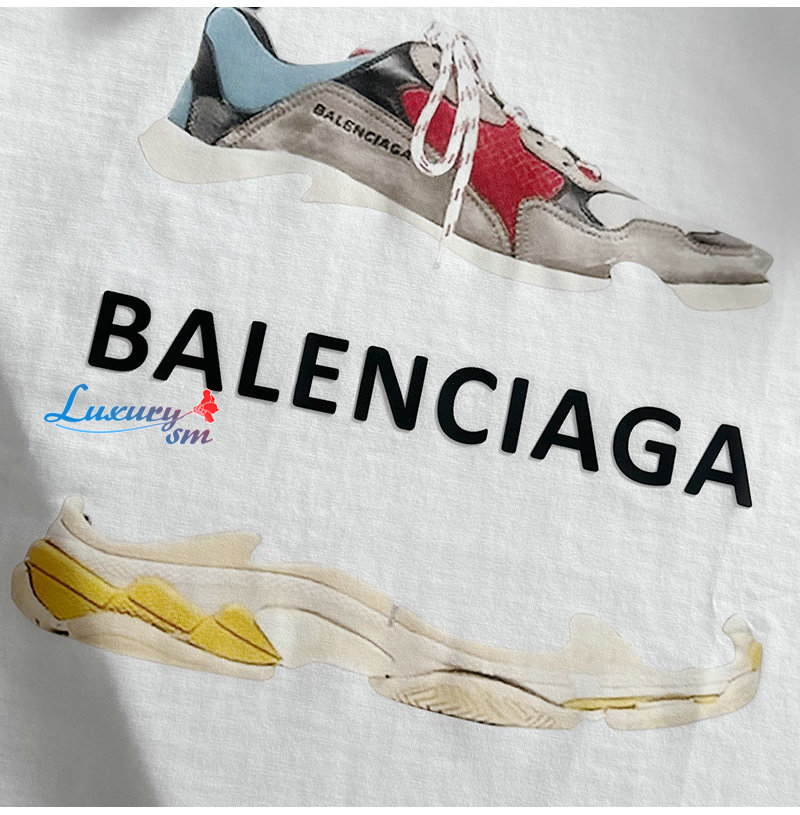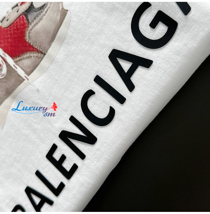 BALENCIAGA-05277 발렌시아가 화이트 프린트 장식 티셔츠 남여공용
