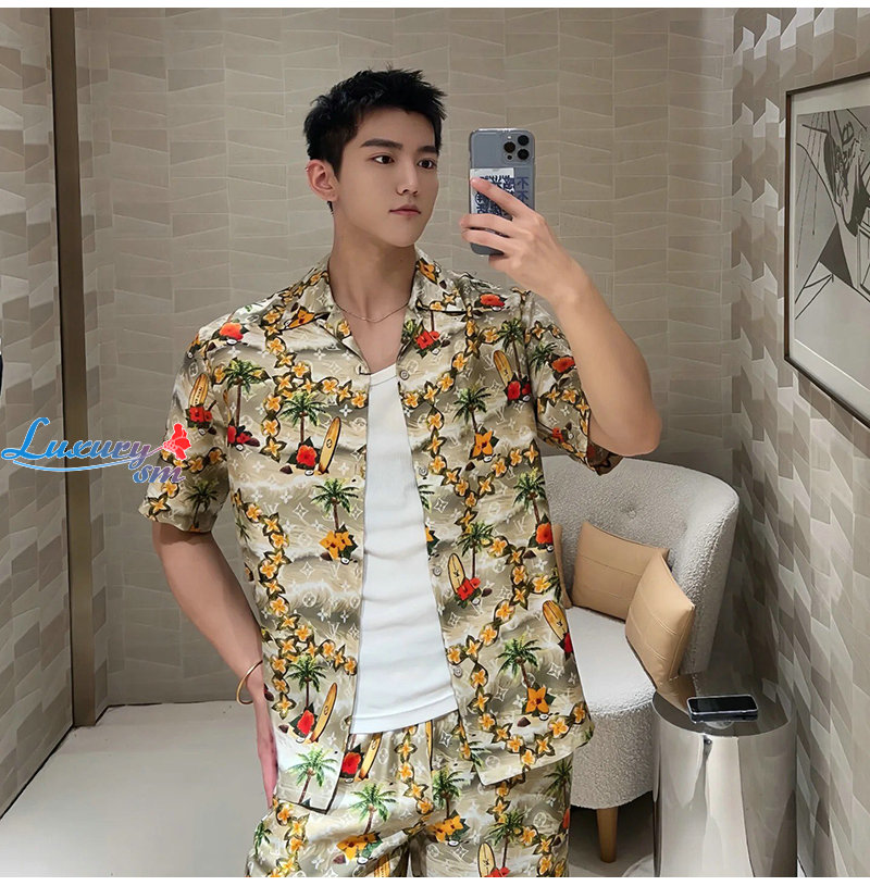LOUIS VUITTON-06117 루이비통 베이지 모노그램 프린트 장식 셔츠 남여공용