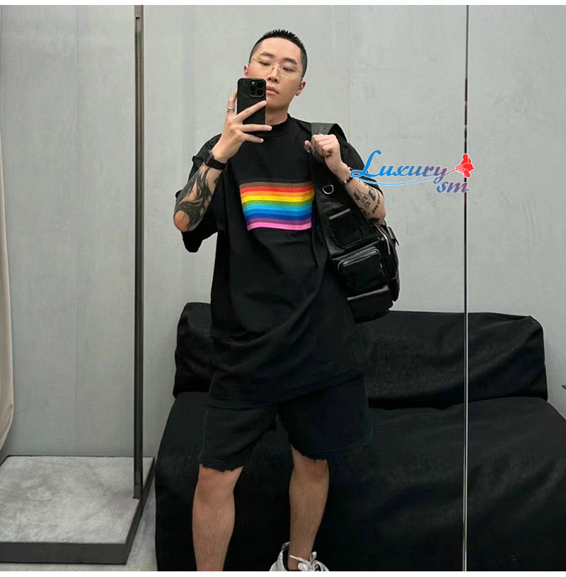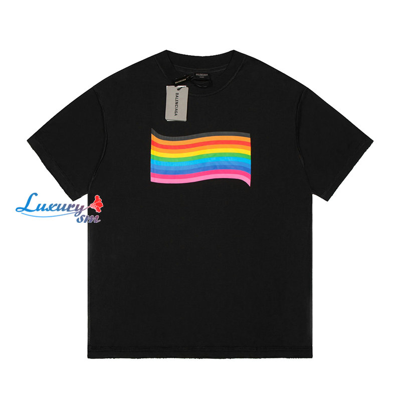 BALENCIAGA-061110 발렌시아가 블랙 프린트 장식 티셔츠 남여공용