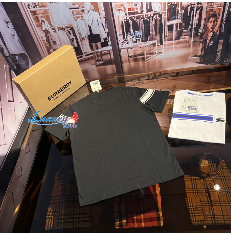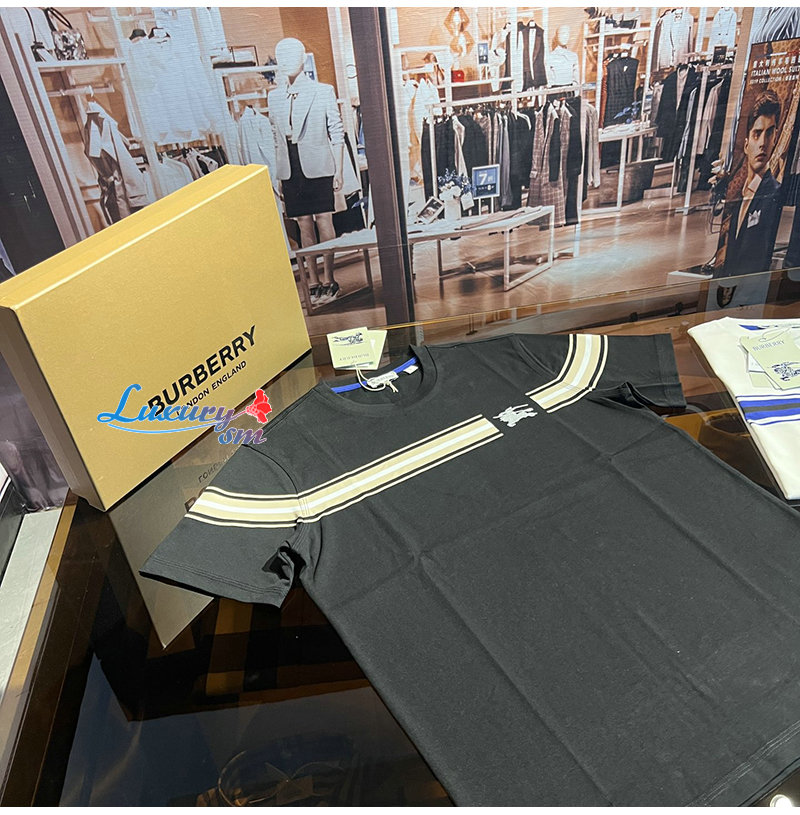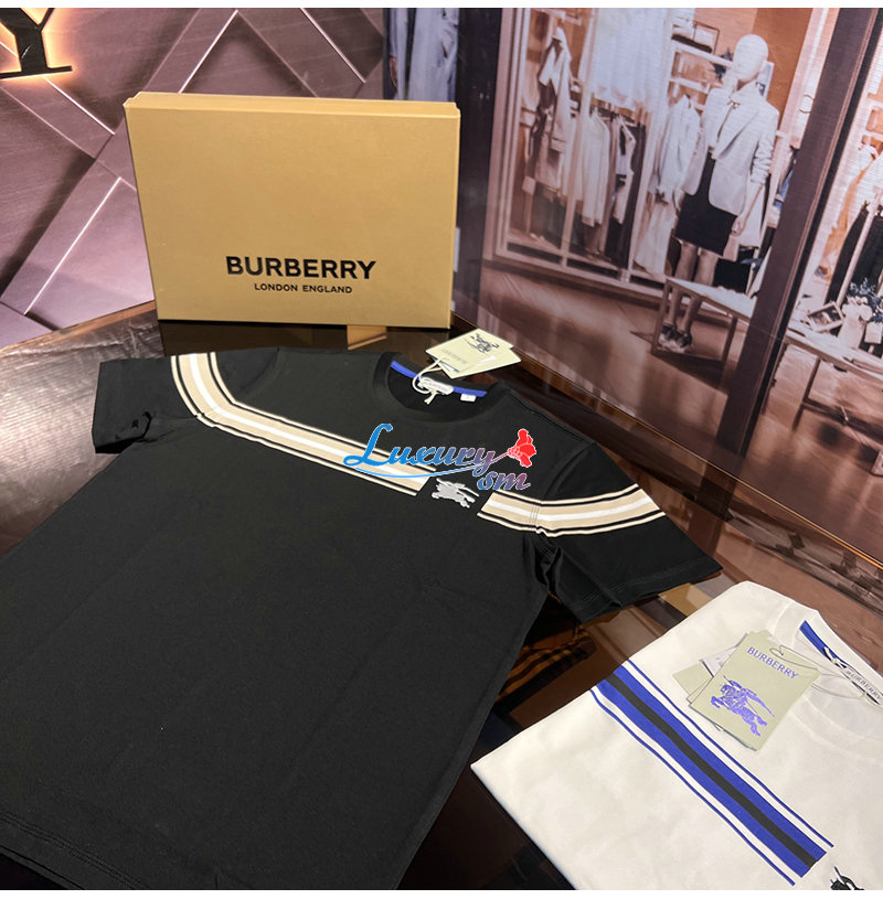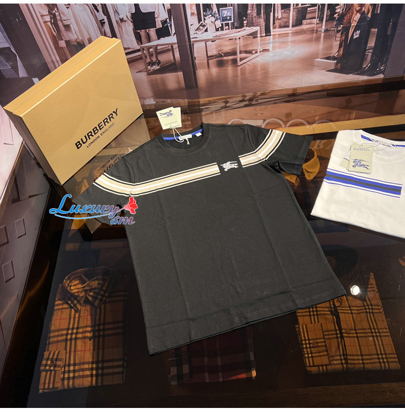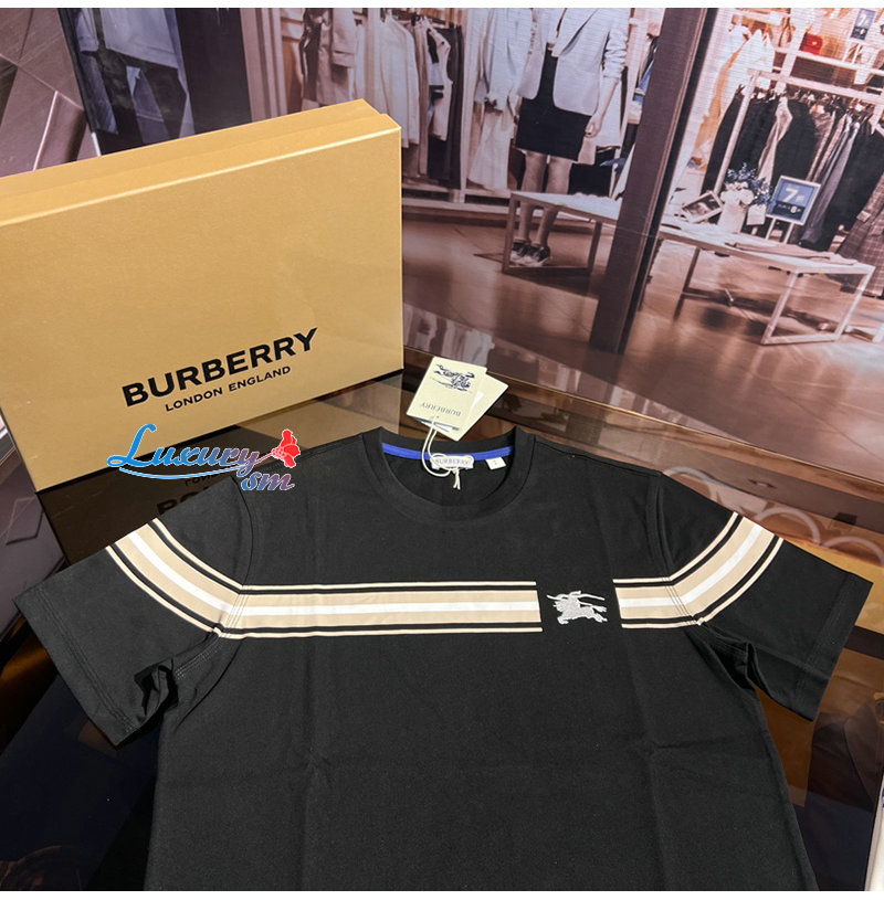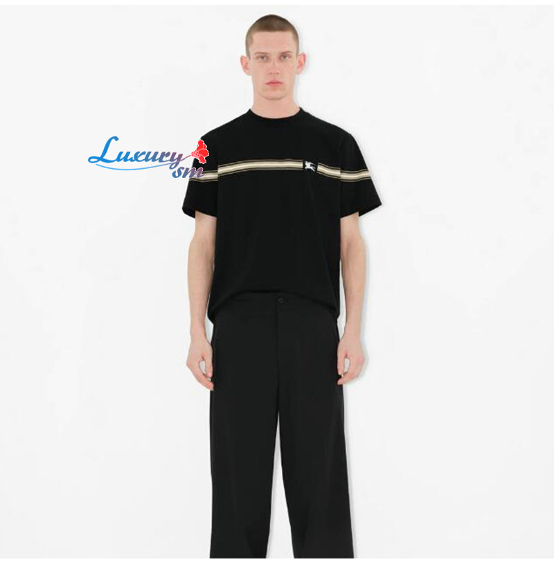 BURBERRY-80910261 버버리 블랙 스트라이프 코튼 티셔츠 남성용