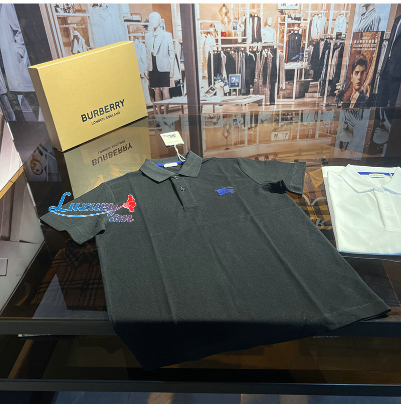 BURBERRY-80849371 버버리 블랙 코튼 폴로