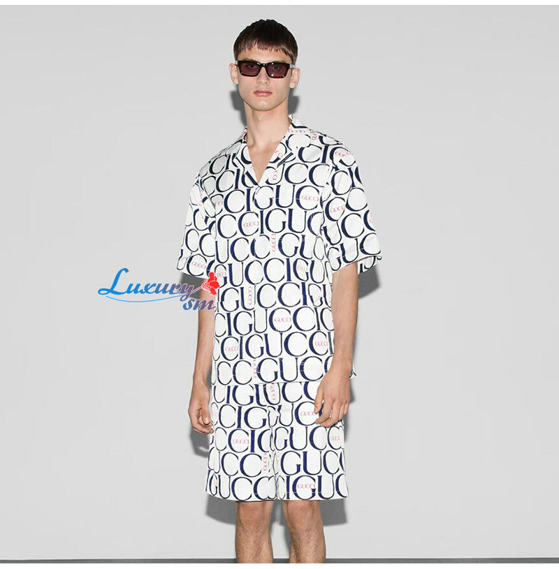 GUCCI-787216 9059 구찌 화이트/블루 맥시 구찌 프린트 쇼츠 남성용 가격 : 150,000원