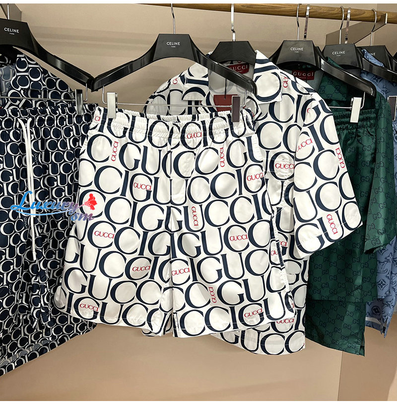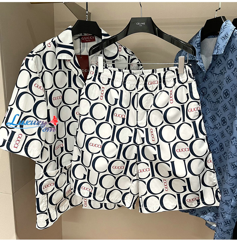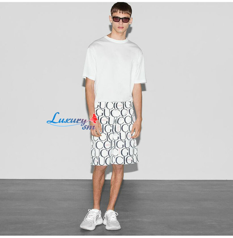 GUCCI-787216 9059 구찌 화이트/블루 맥시 구찌 프린트 쇼츠 남성용