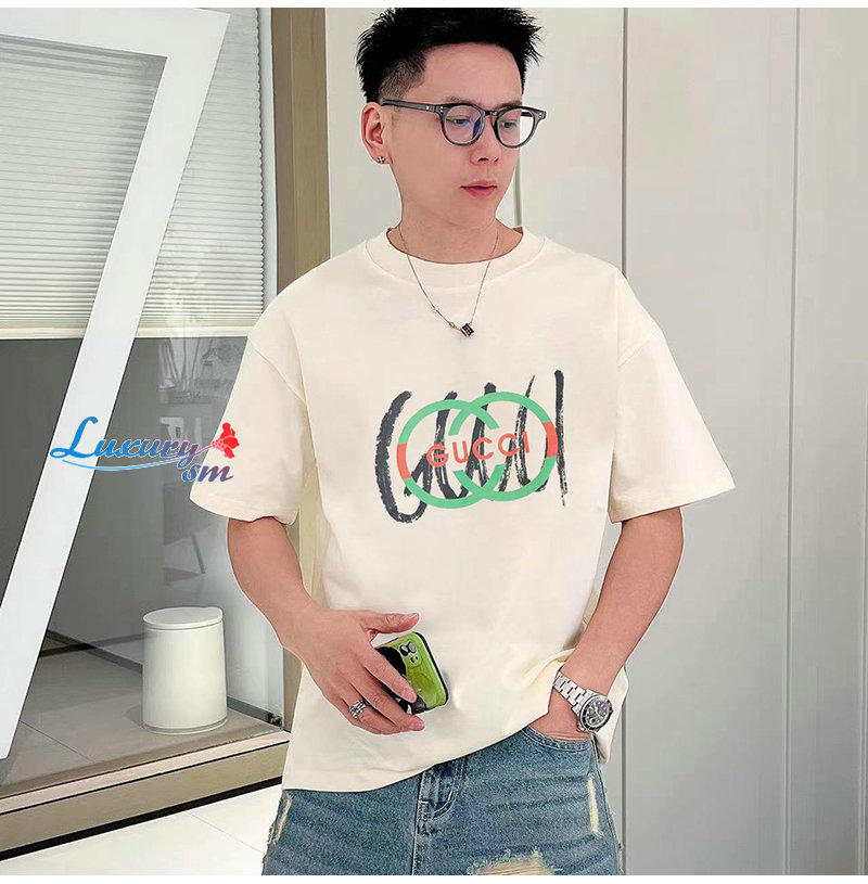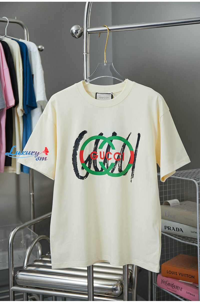 GUCCI-06239 구찌 아이보리 GG 프린트 장식 티셔츠 남여공용