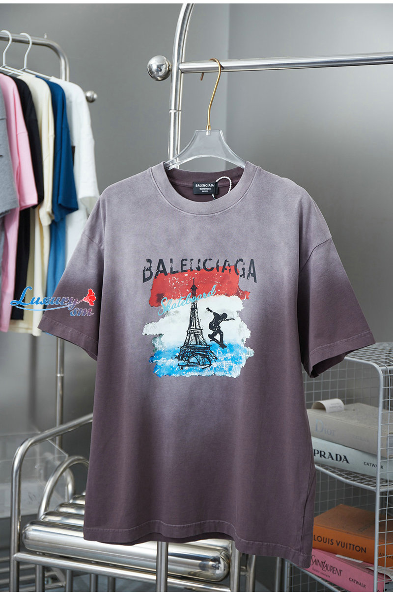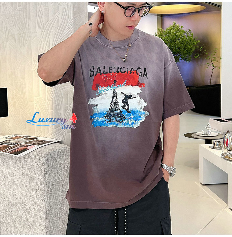 BALENCIAGA-062315 발렌시아가 블루 프린트 장식 워싱 빈티지 티셔츠 남여공용