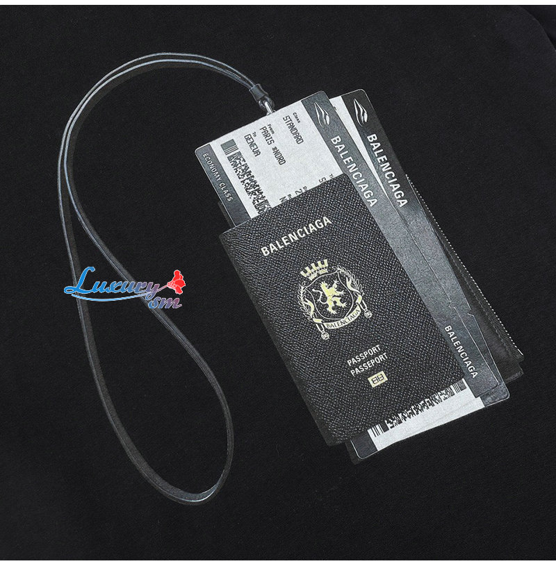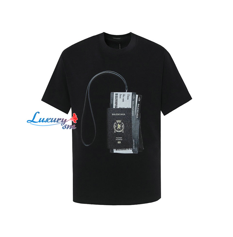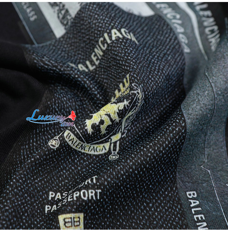 BALENCIAGA-06228 발렌시아가 블랙 패스포트 홀더 프린트 장식 티셔츠 남여공용