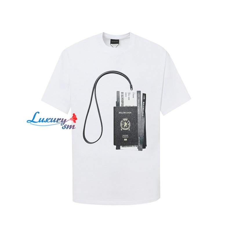 BALENCIAGA-06229 발렌시아가 화이트 패스포트 홀더 프린트 장식 티셔츠 남여공용