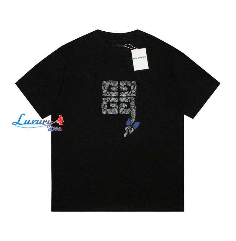 GIVENCHY-07248 지방시 블랙 4G 프린트 장식 티셔츠 남여공용