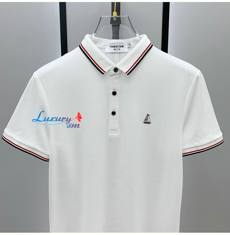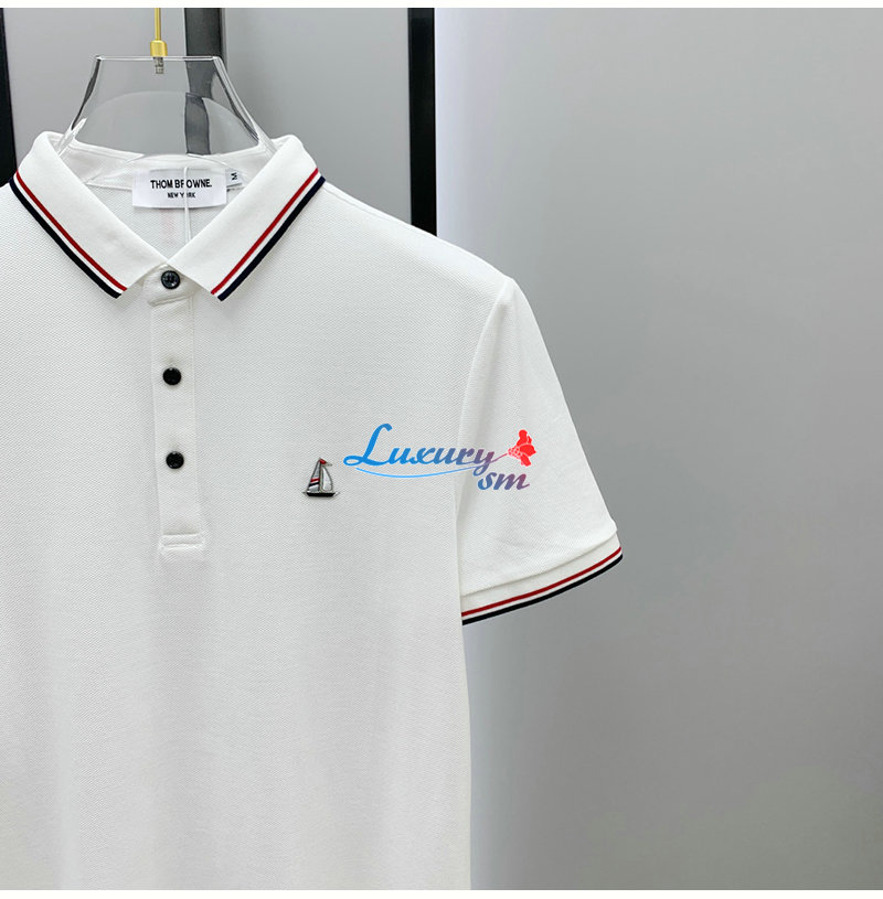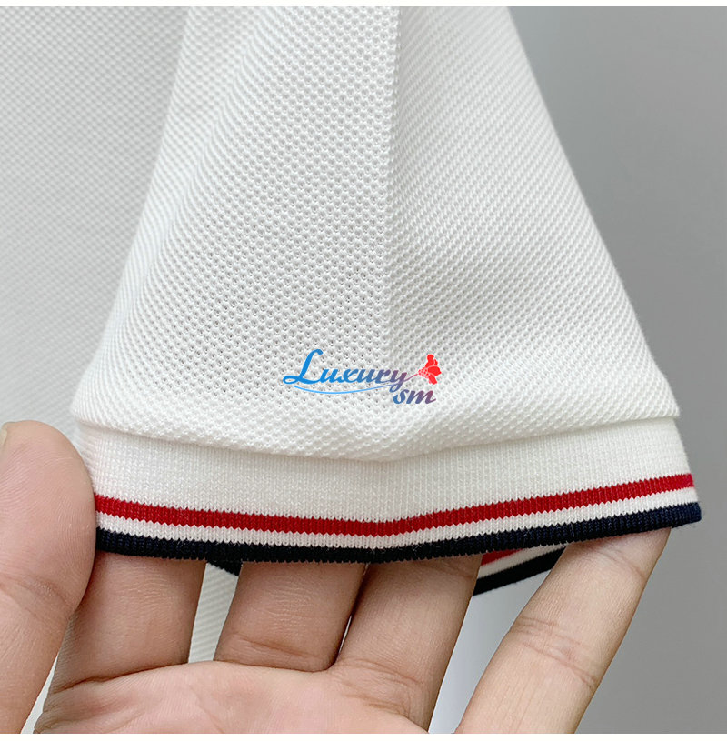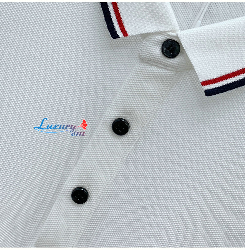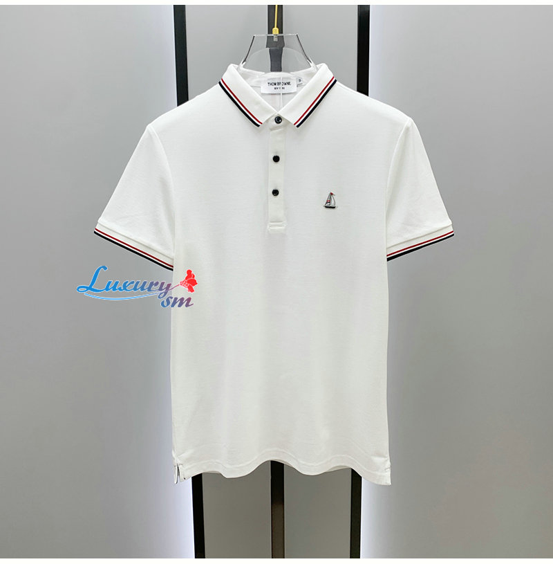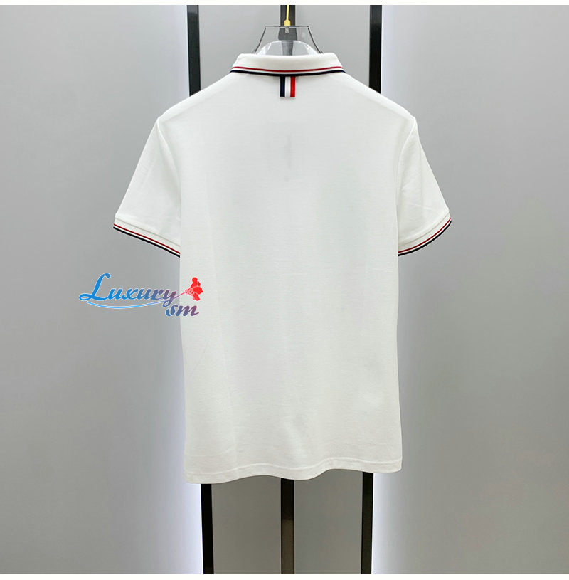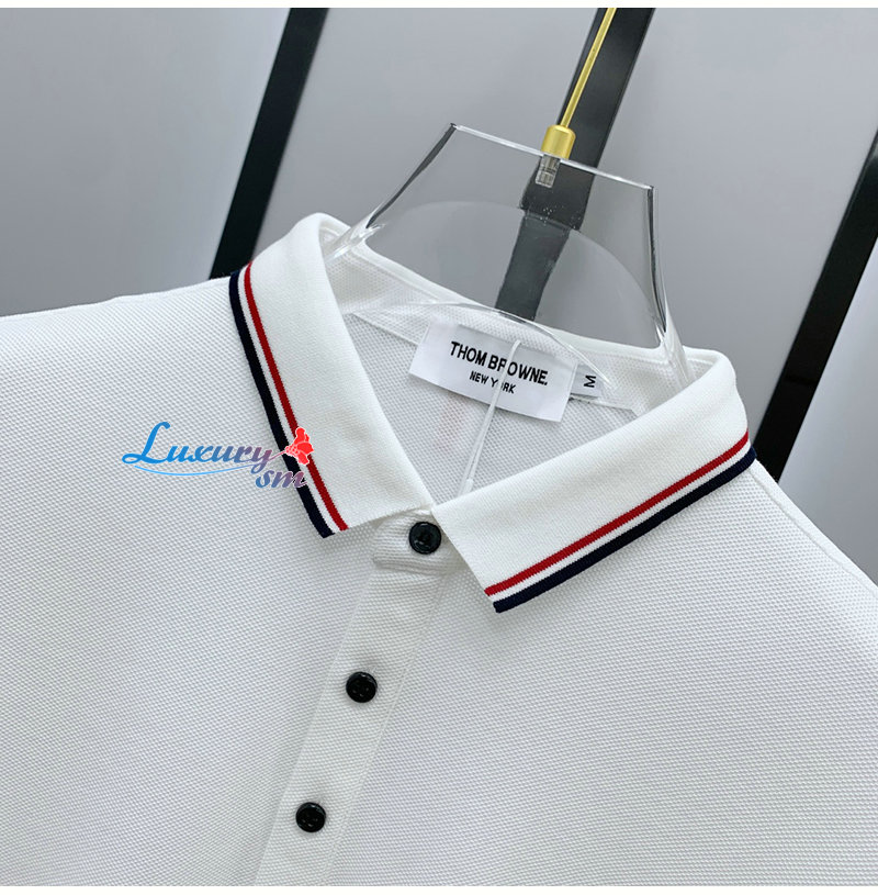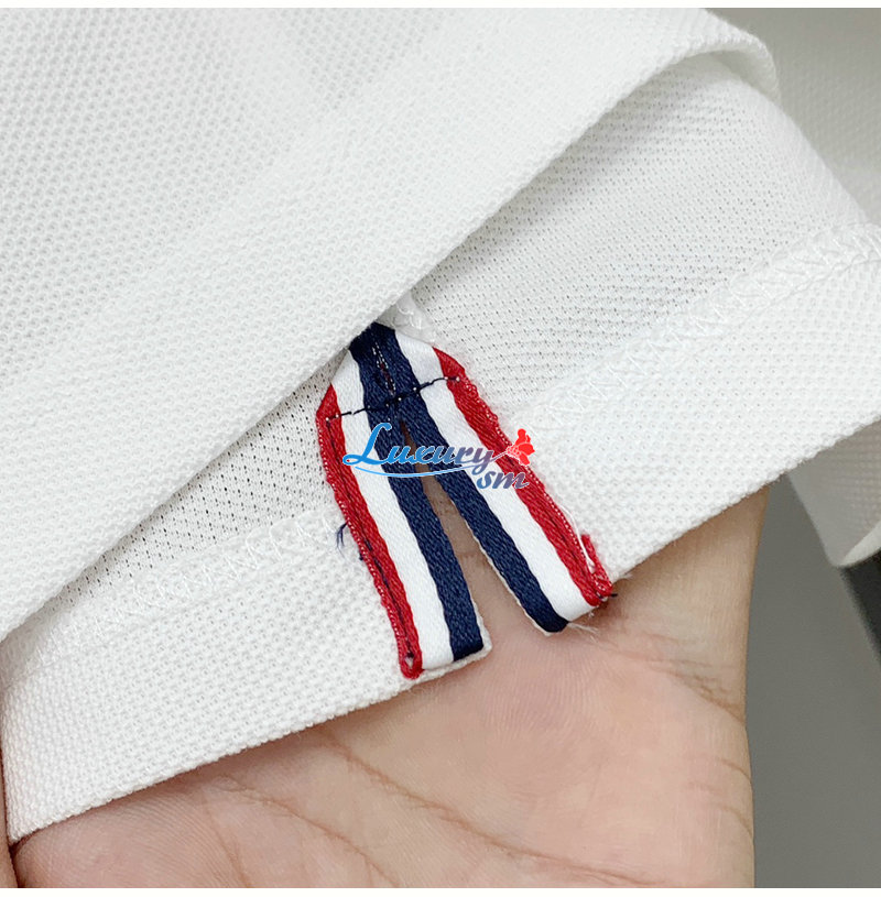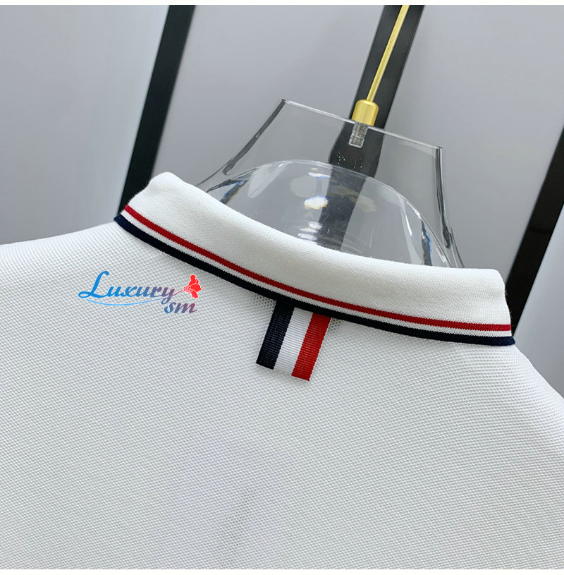 THOM BROWNE-07233 톰 브라운 화이트 스트라이프 장식 폴로 티셔츠 남성용
