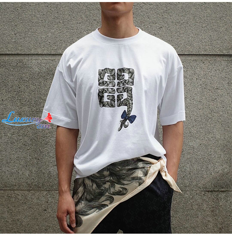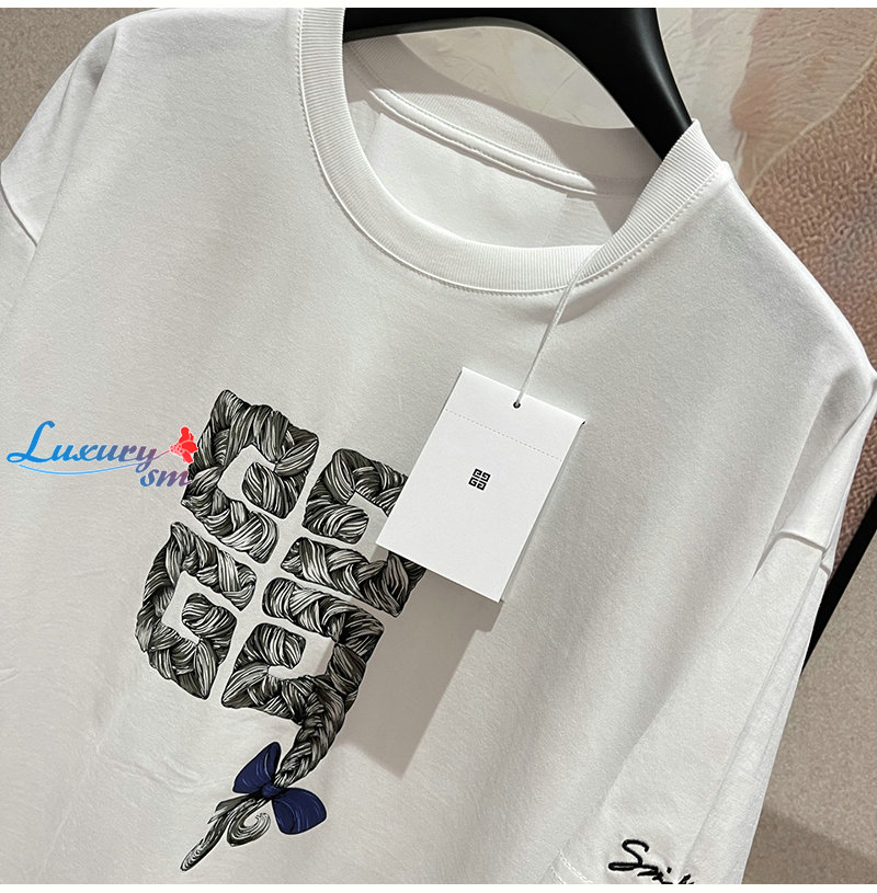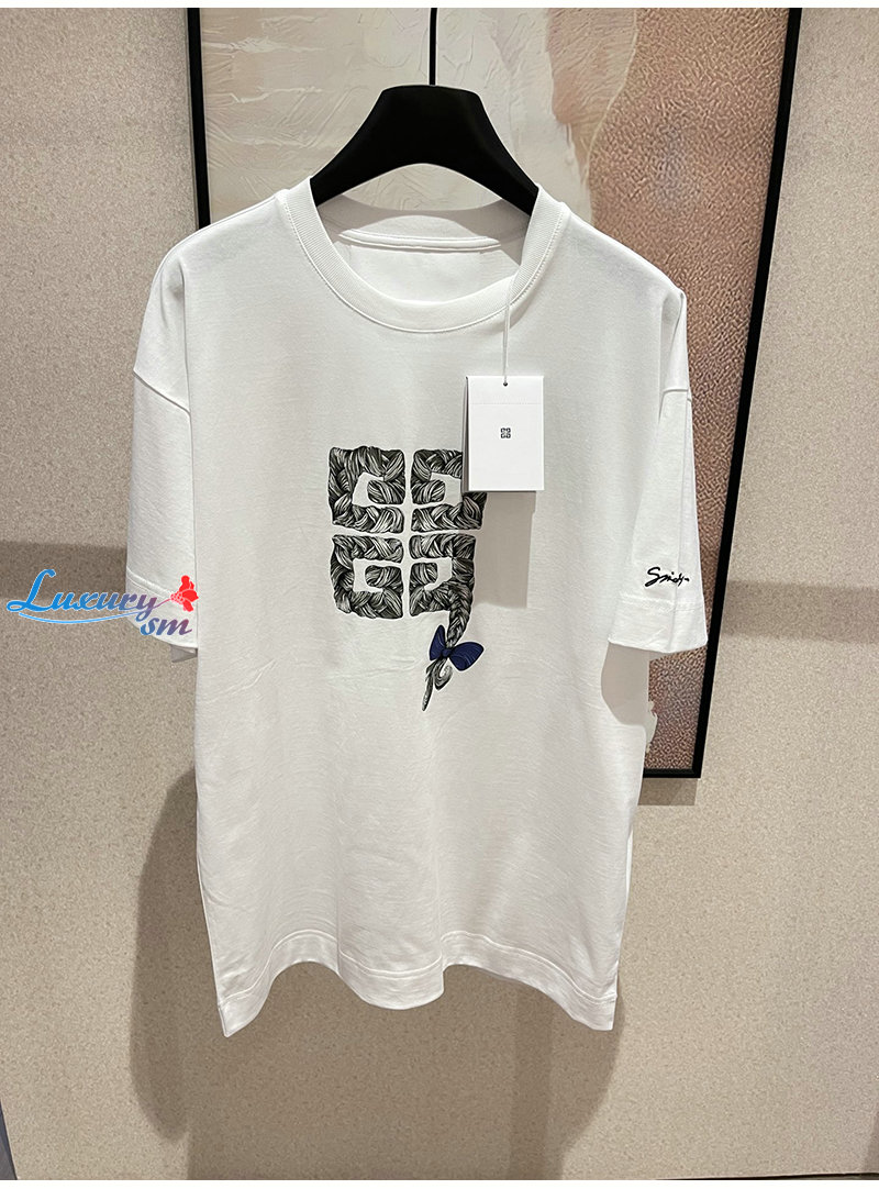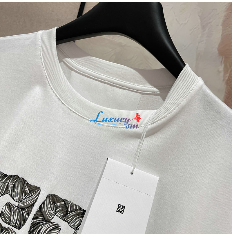 GIVENCHY-07301 지방시 화이트 4G 프린트 장식 티셔츠 남여공용