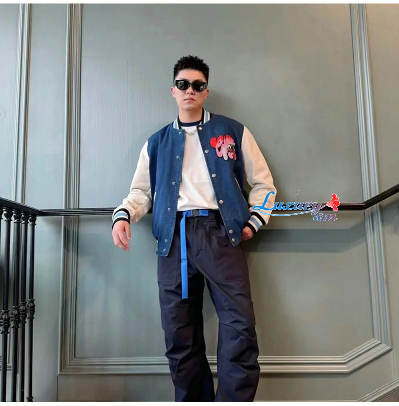 GUCCI-08211 구찌 화이트/블루 아플리케 장식 베이스볼 재킷 남여공용