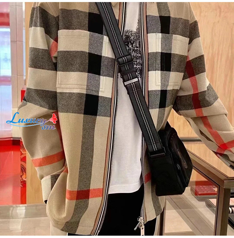 BURBERRY-08304 버버리 베이지 울 체크 무늬 재킷 남성용