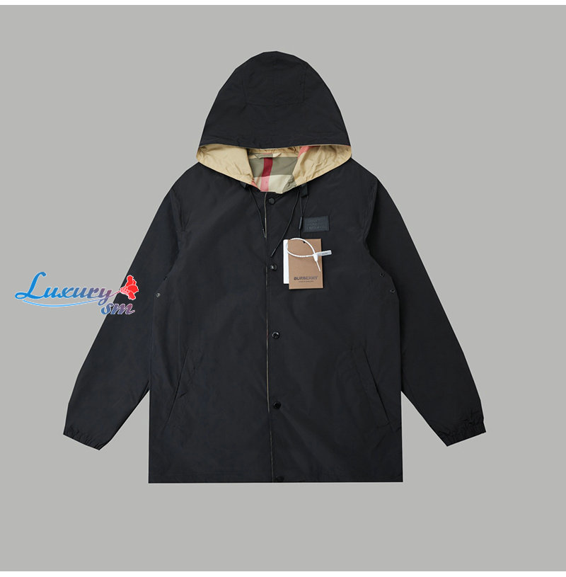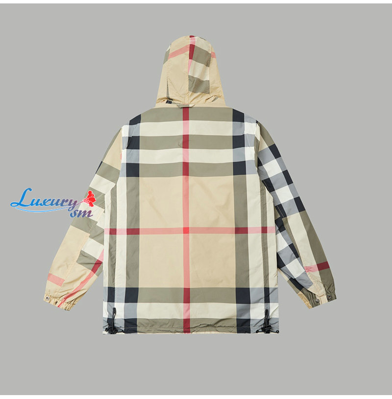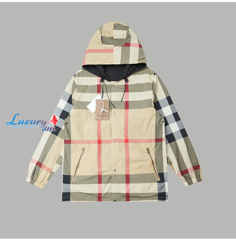BURBERRY-08305 버버리 베이지 체크 무늬 바람막이 후드 재킷 남성용