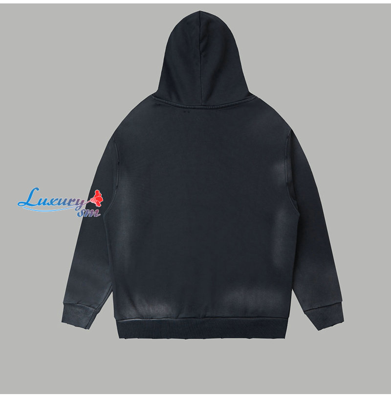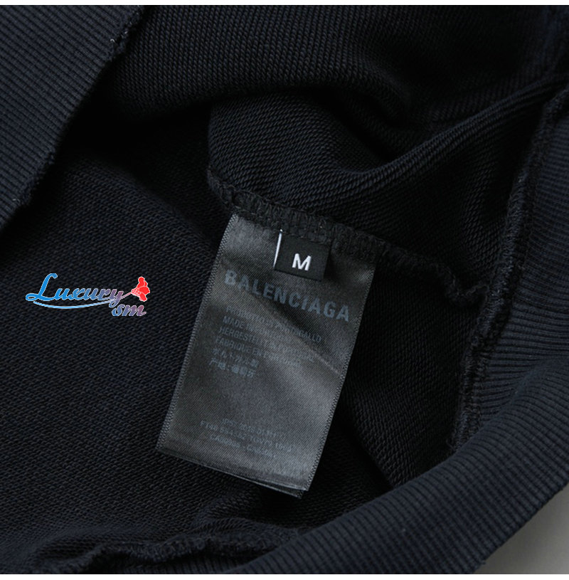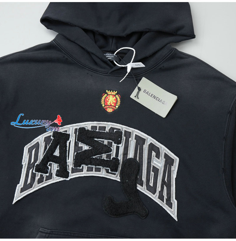BALENCIAGA-08309 발렌시아가 블랙 아플리케 장식 더티워싱 후드 티셔츠 남여공용