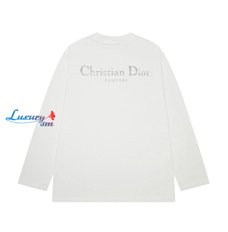 DIOR-09027 디올 화이트 프린트 장식 긴팔 티셔츠 남여공용
