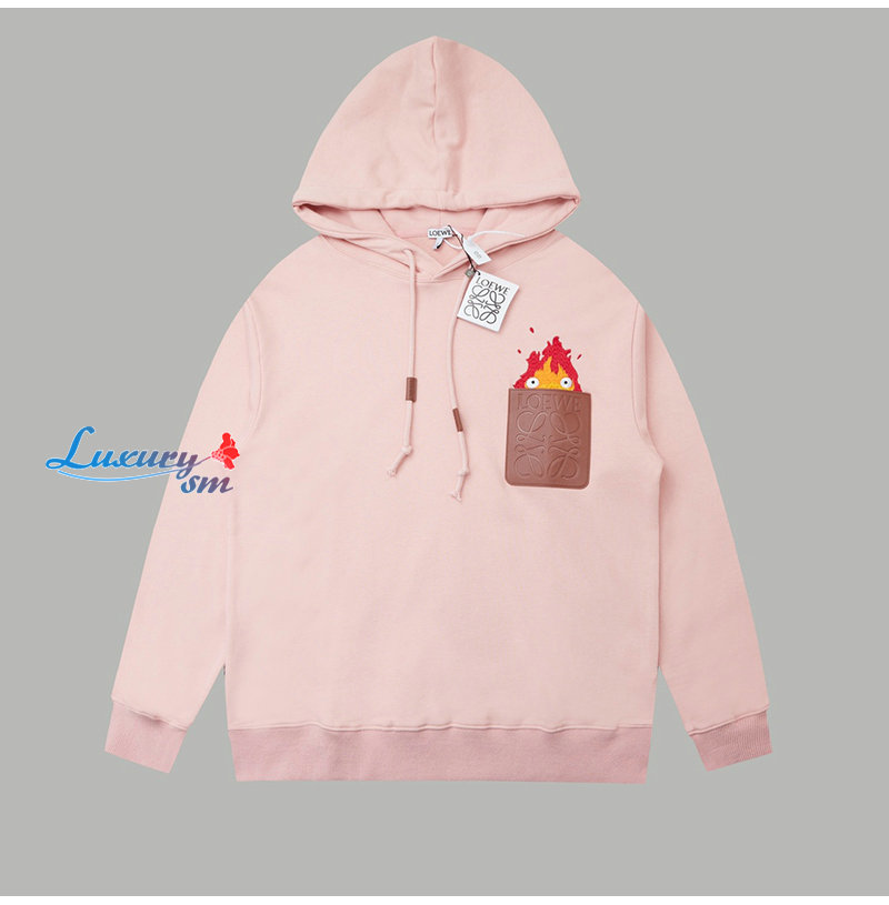 LOEWE-090912 로에베 핑크 아플리케 장식 후드 티셔츠 남여공용