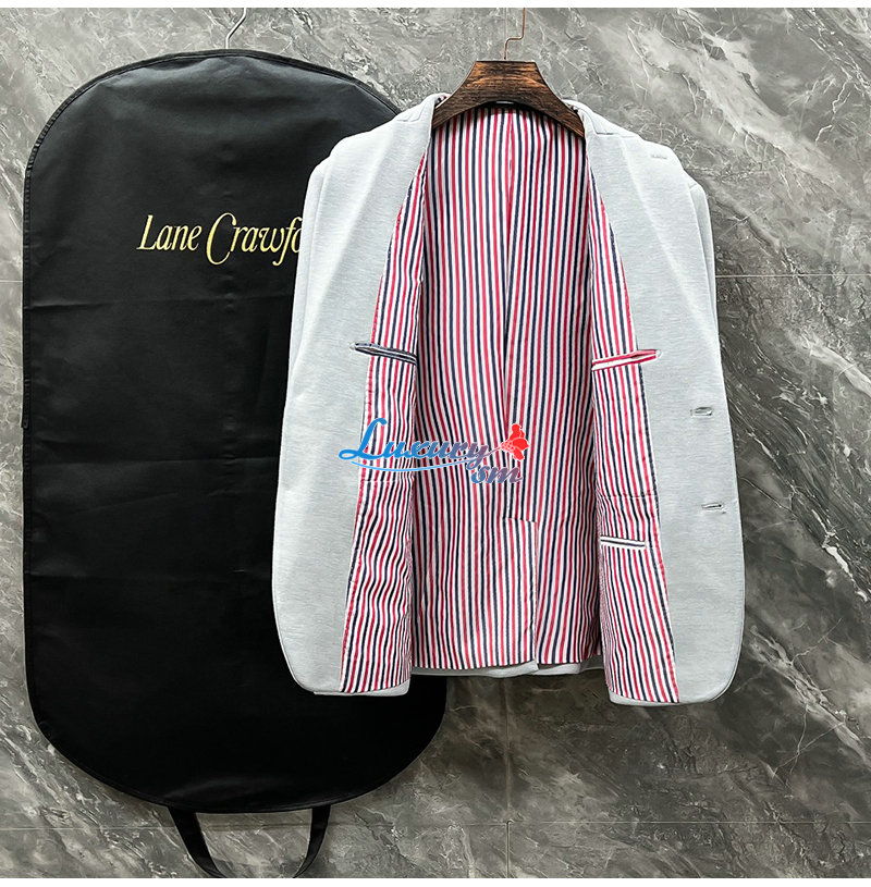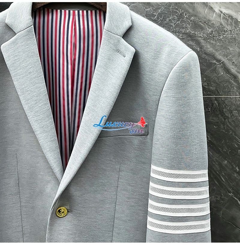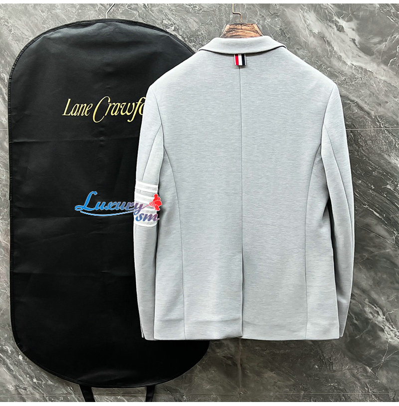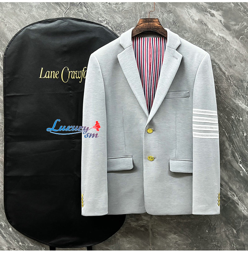 THOM BROWNE-092912 톰 브라운 라이트 그레이 스트라이프 장식 투 버튼 수트 남성용