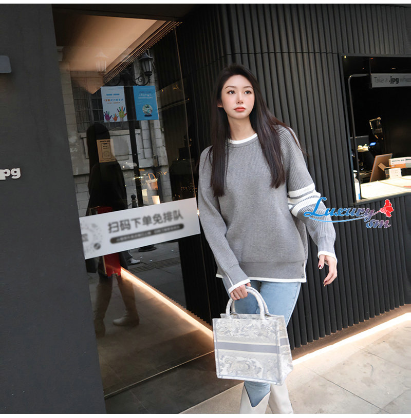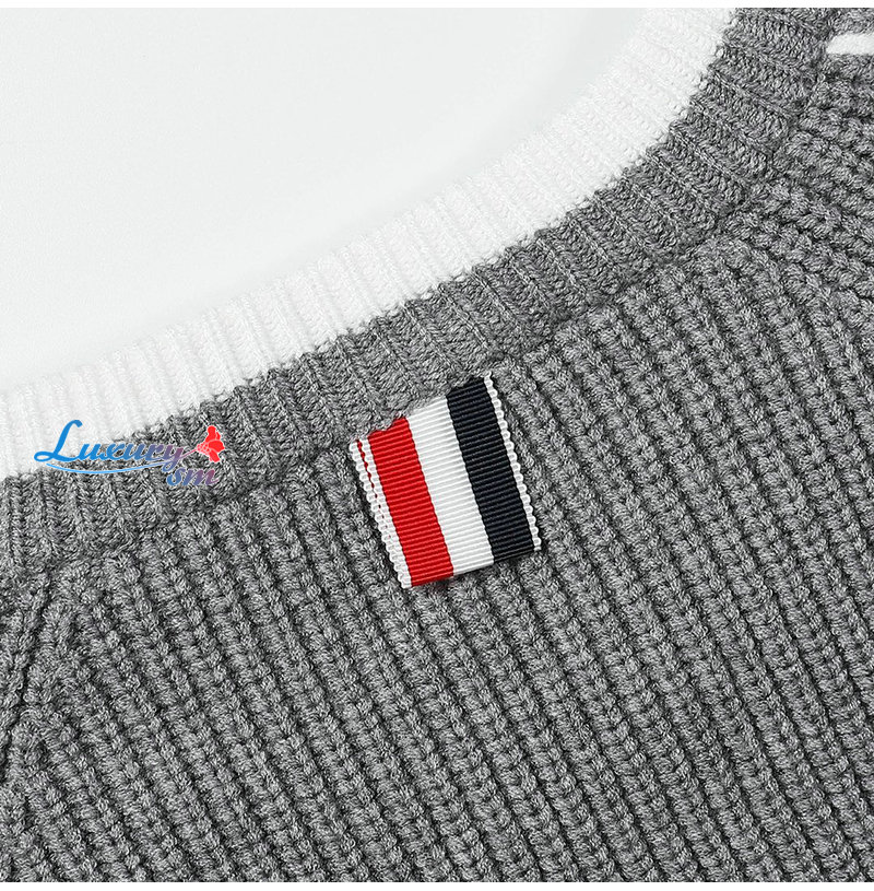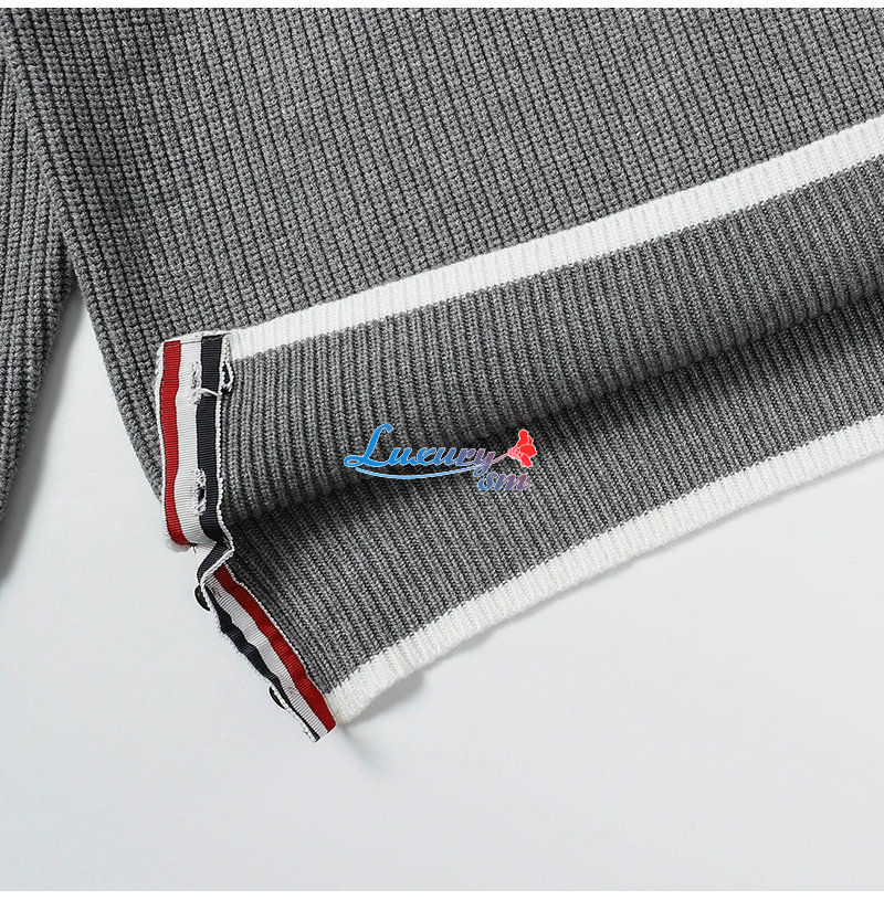 THOM BROWNE-12249 톰 브라운 그레이 스트라이프 장식 스웨터 남여공용