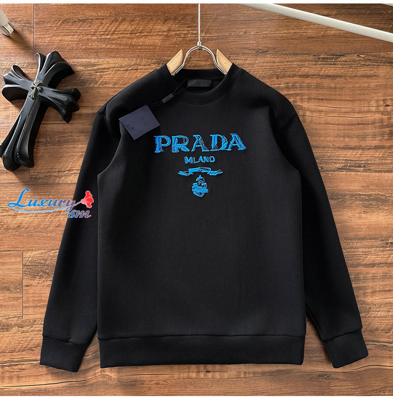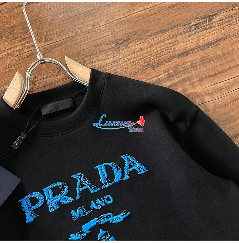 PRADA-01089 프라다 블랙 아플리케 장식 스웨트셔츠 남성용