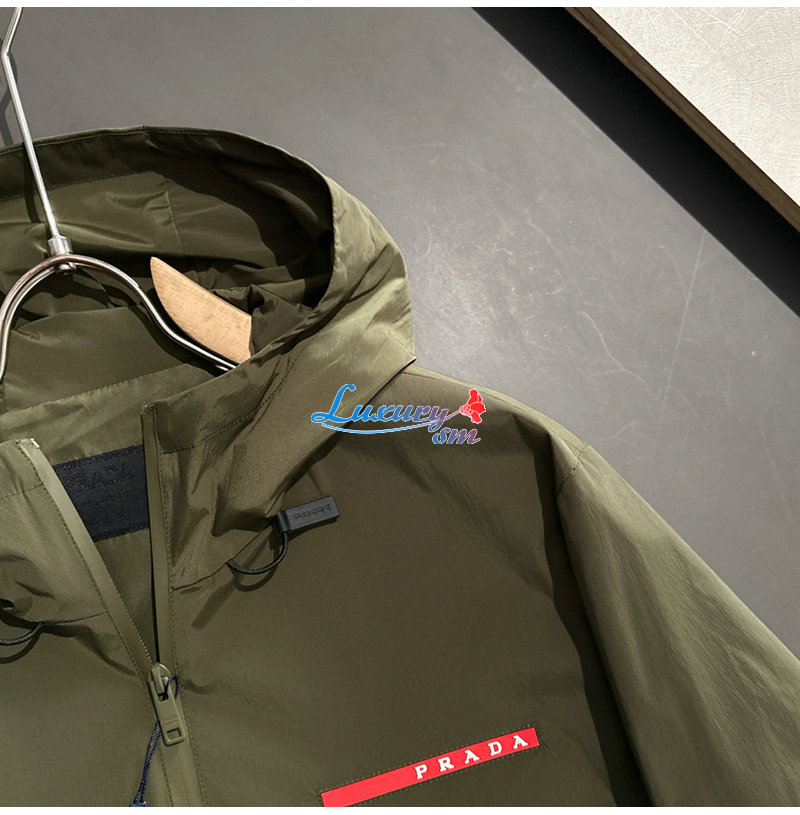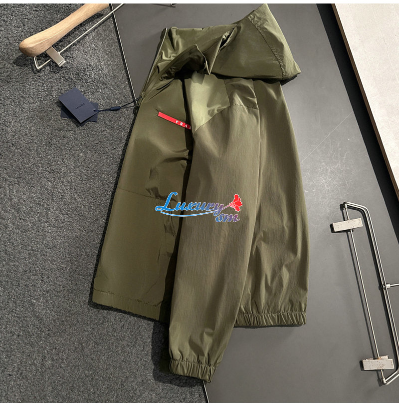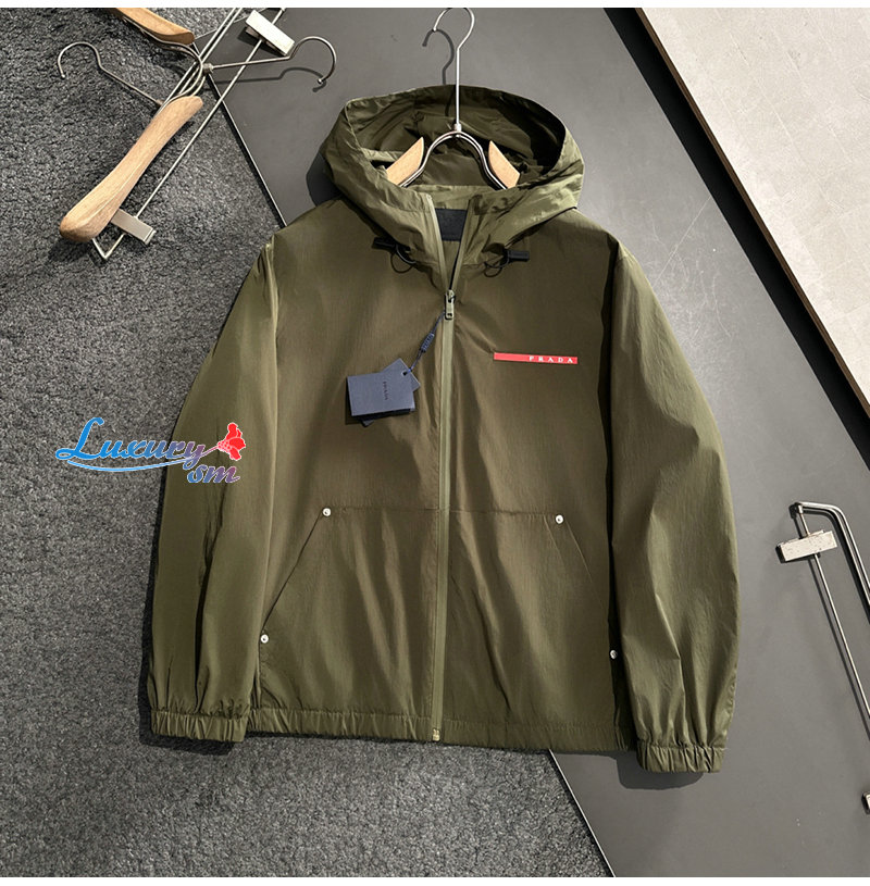 PRADA-02195 프라다 카키 나일론 바람막이 후드 재킷 남성용