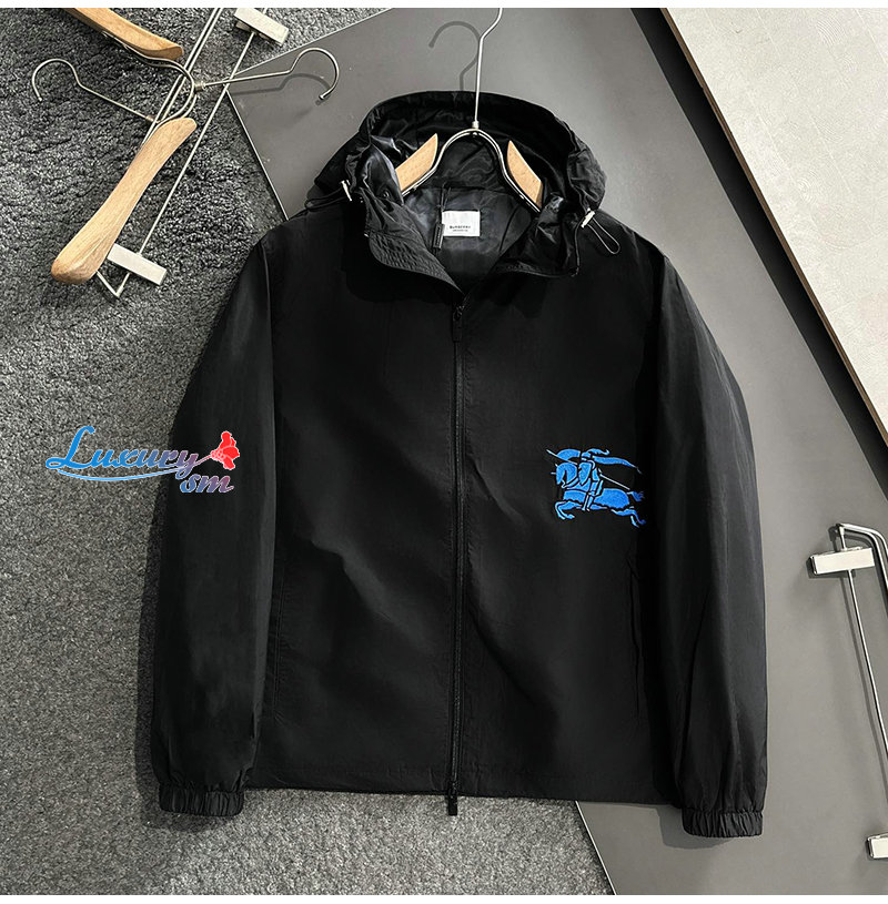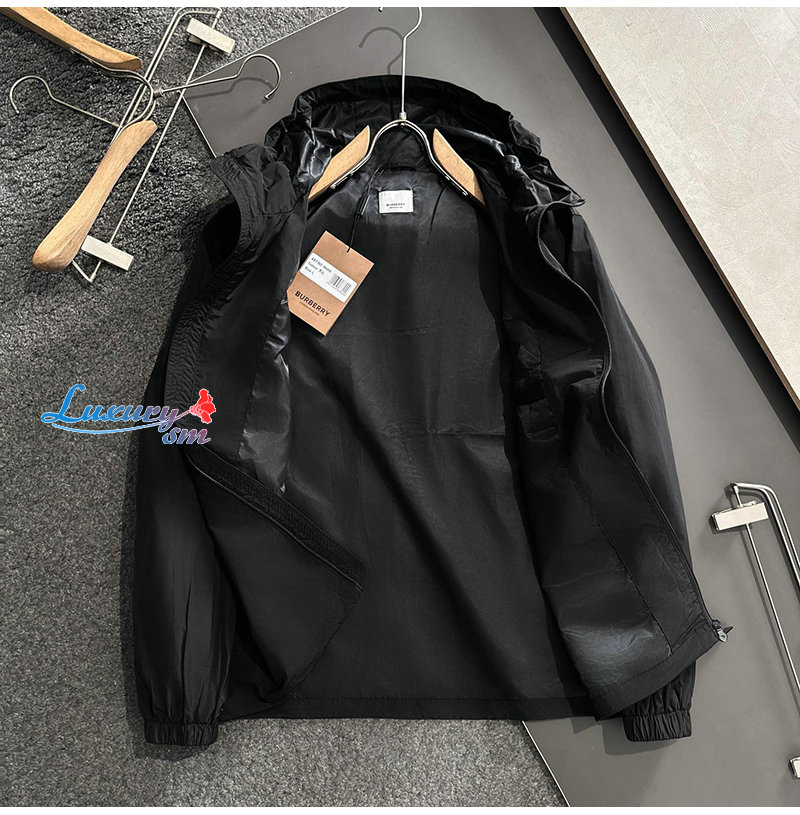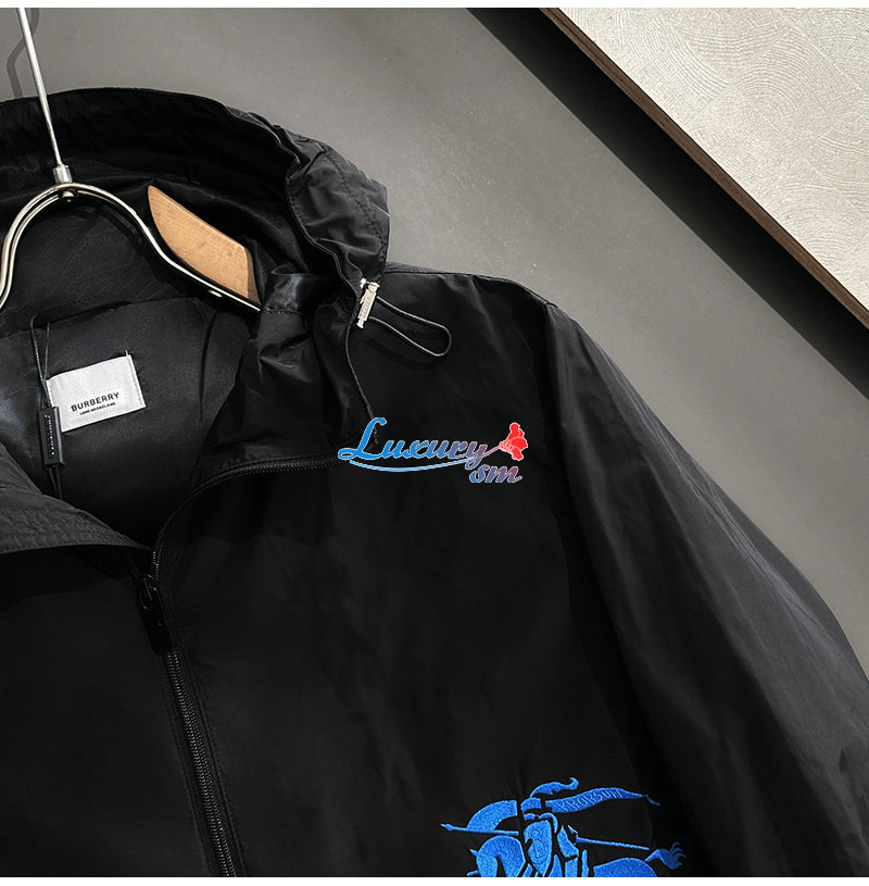 BURBERRY-02193 버버리 블랙 아플리케 장식 바람막이 후드 재킷 남성용