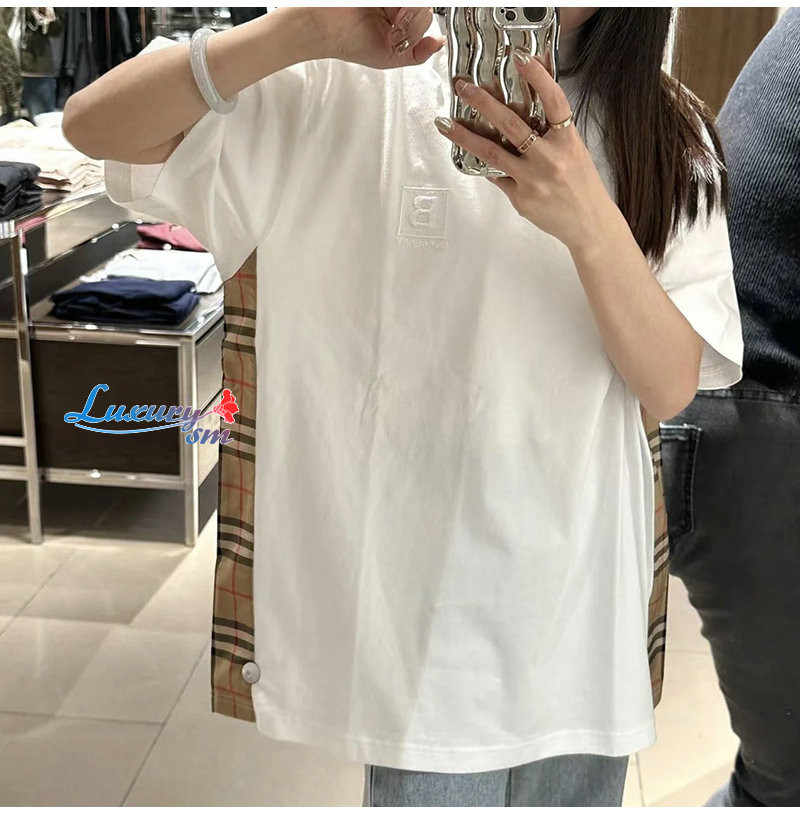 BURBERRY-03203 버버리 베이지 체크 디테일 티셔츠 남여공용 가격 : 160,000원