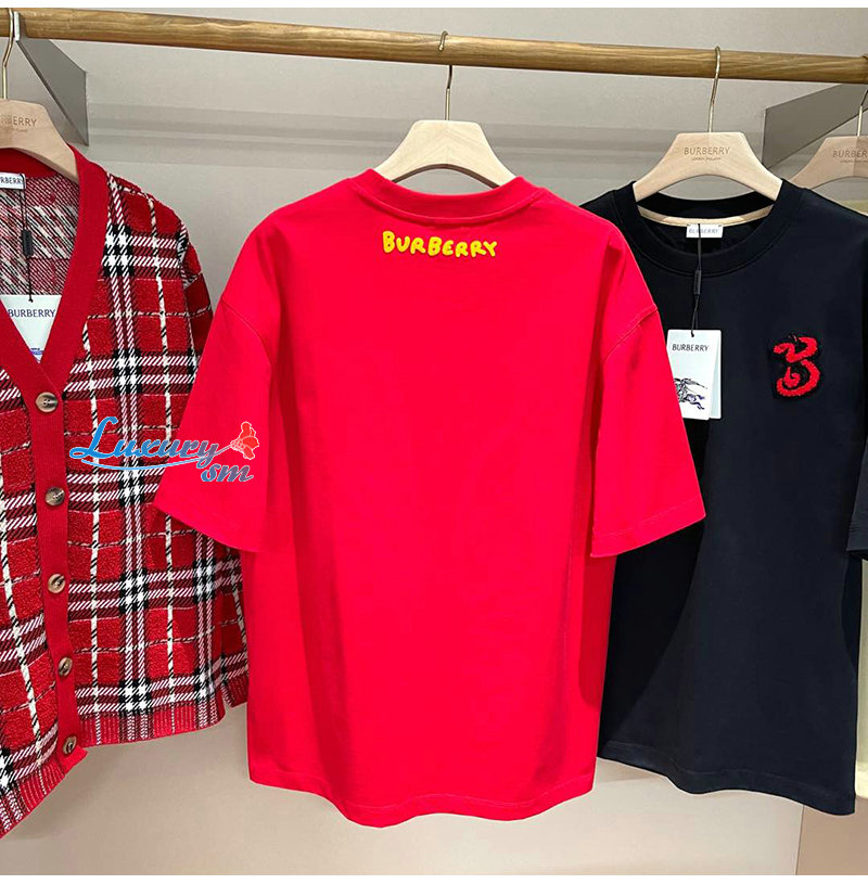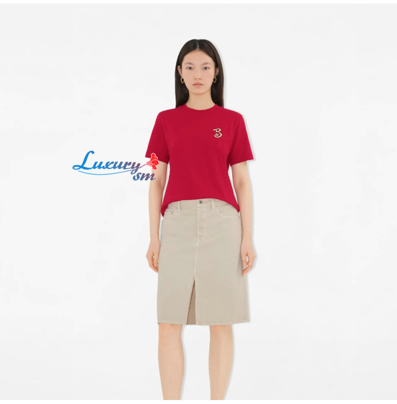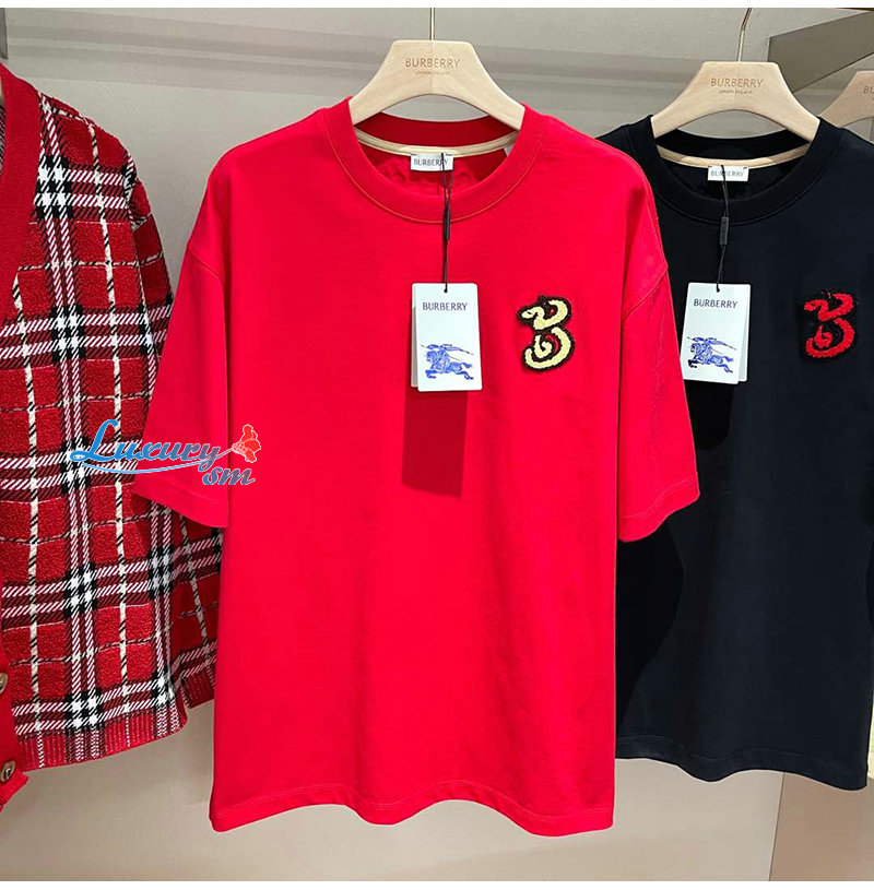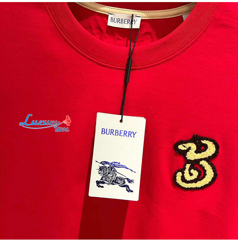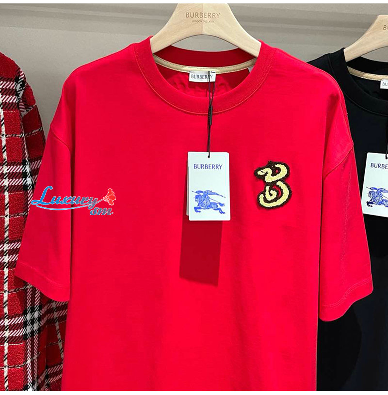 BURBERRY-81013961 버버리 레드 B 스네이크 코튼 티셔츠 남여공용