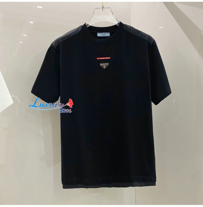 PRADA-032711 프라다 블랙 트라이앵글 로고 티셔츠 남여공용