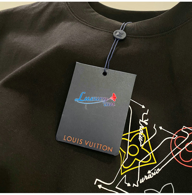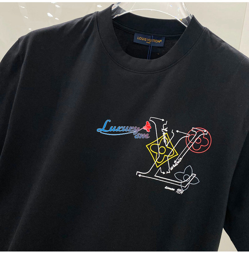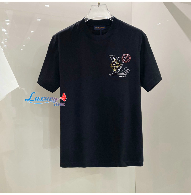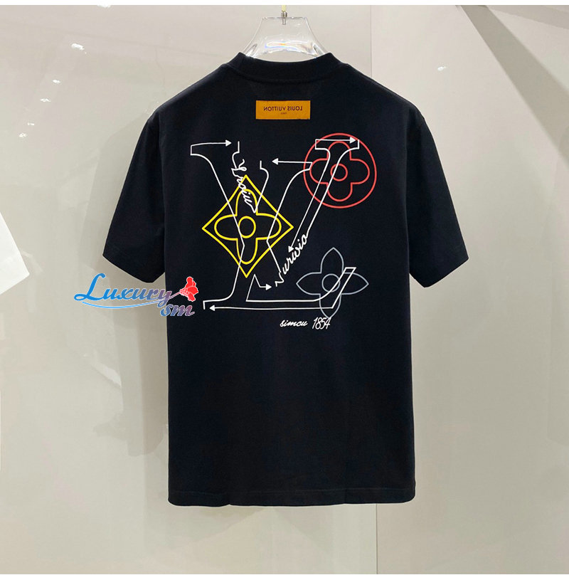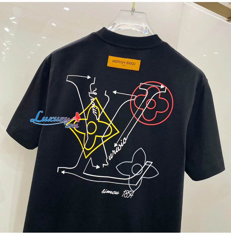 LOUIS VUITTON-032713 루이비통 블랙 LV 시그니처 프린트 장식 티셔츠 남여공용