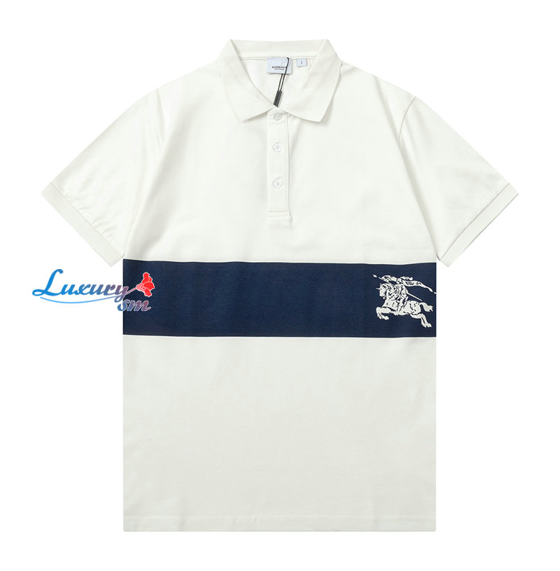 BURBERRY-04011 버버리 화이트/네이비 코튼 폴로 티셔츠 남성용