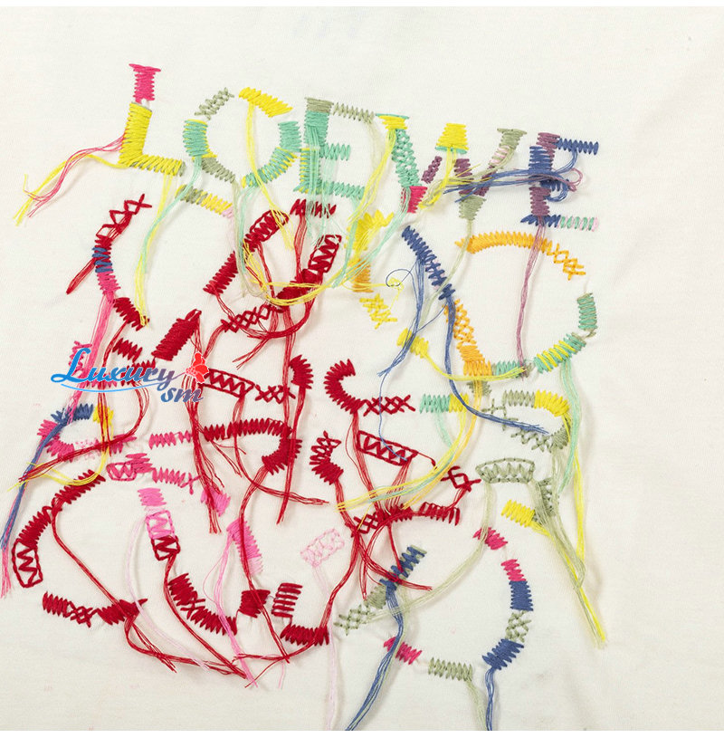 LOEWE-040110 로에베 아이보리 로고 아플리케 장식 티셔츠 남여공용