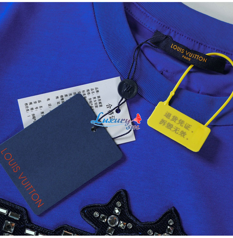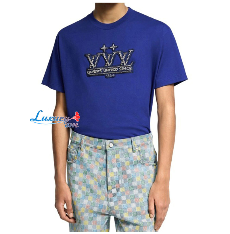 LOUIS VUITTON-05069 루이비통 블루 아플리케 장식 티셔츠 남여공용